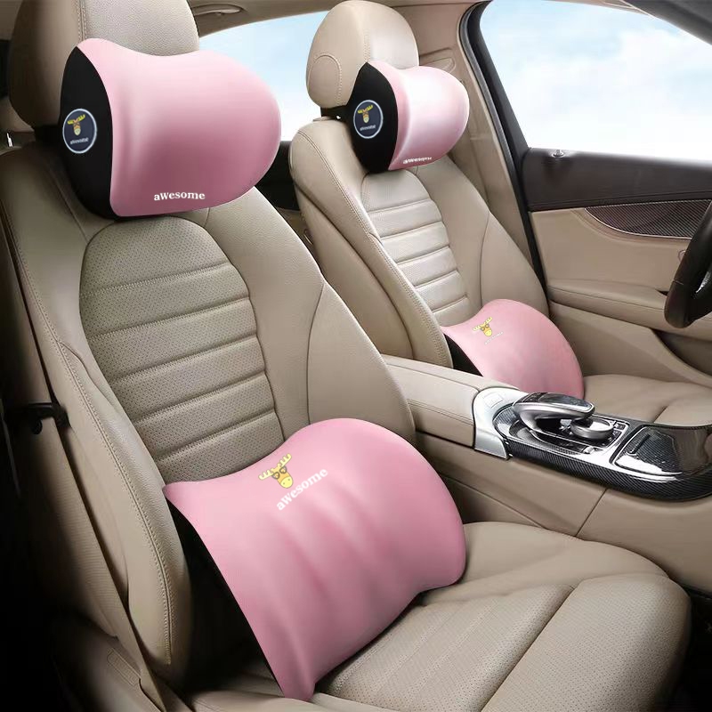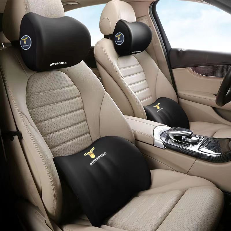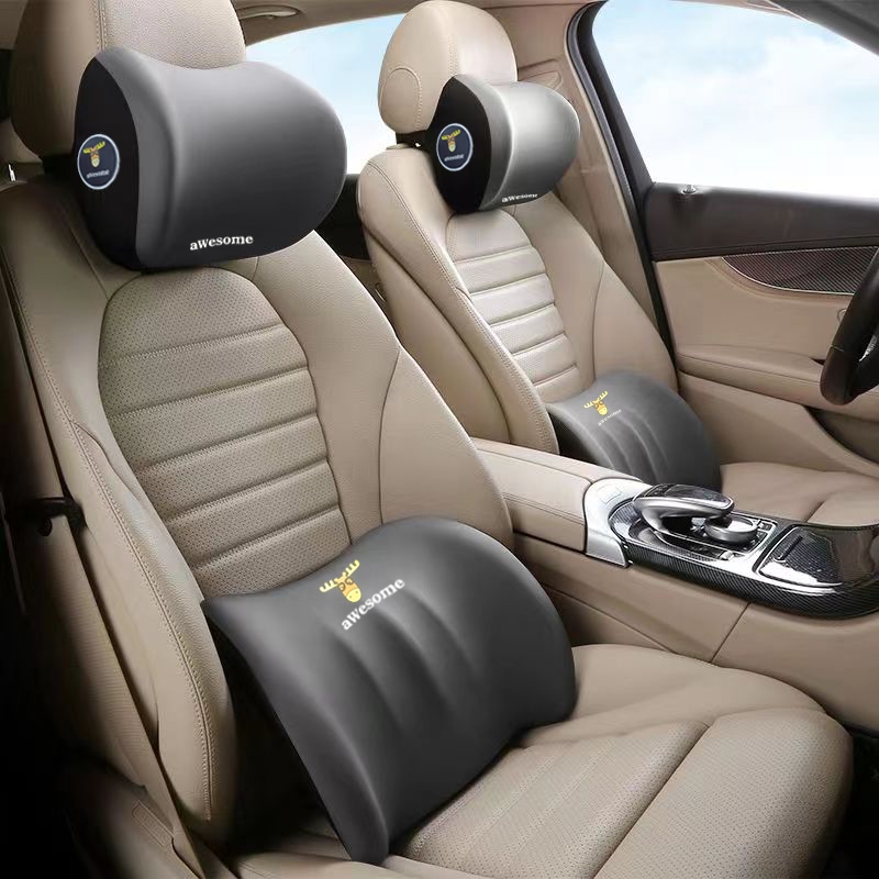 หมอนรองคอในรถ ชุดหมอนรองคอในรถยนต์ ที่รองหลังเบาะรถยนต์ พนักพิงศีรษะ ป้องกันคอและเอว แก้ปวดหลัง