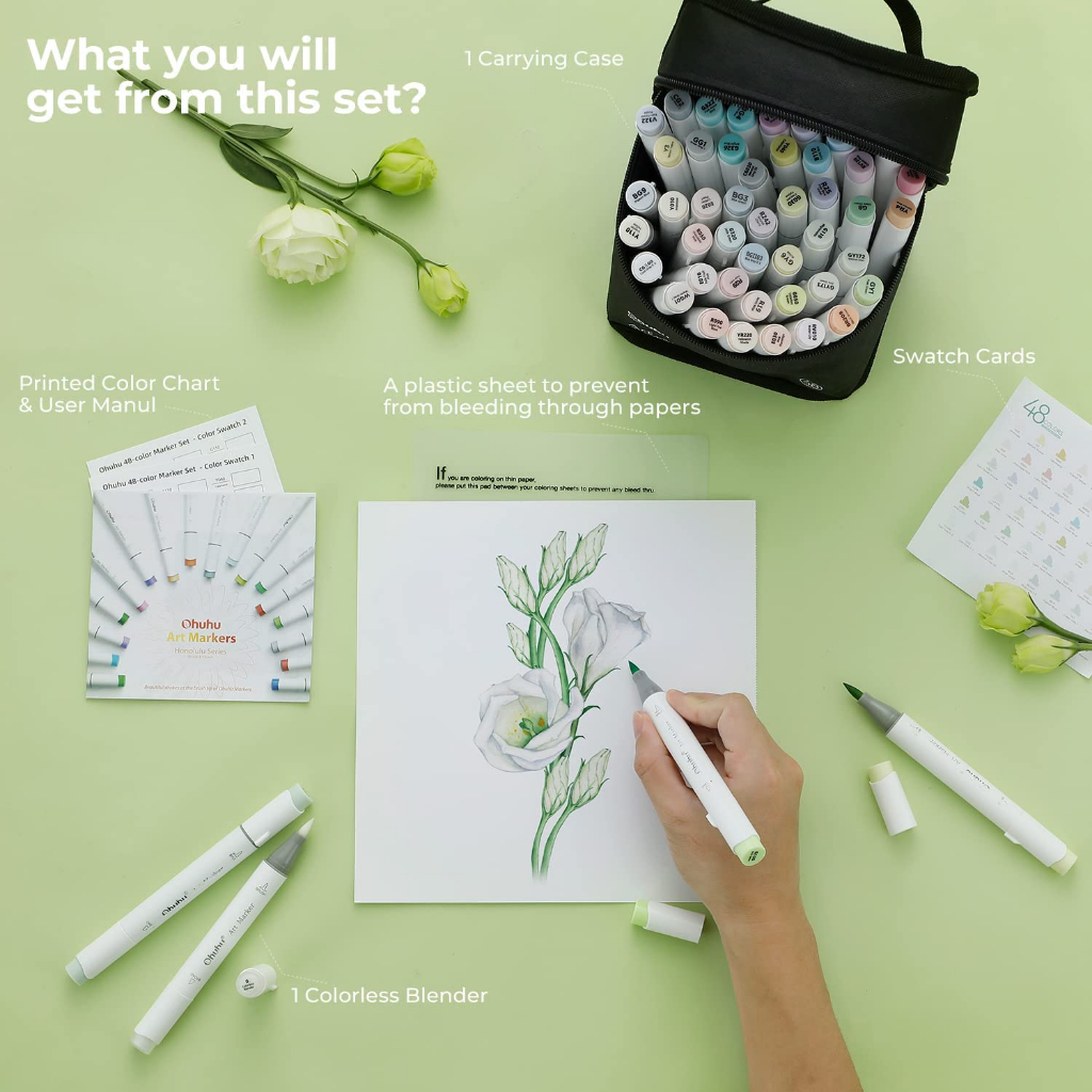 FOLIO ART : ปากกามาร์คเกอร์ Ohuhu เซต Pastel Blossoming 48 สี (Honolulu Series) 90031