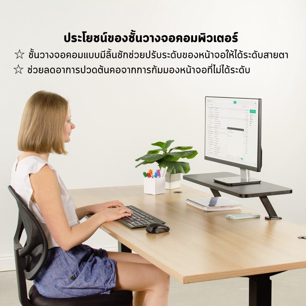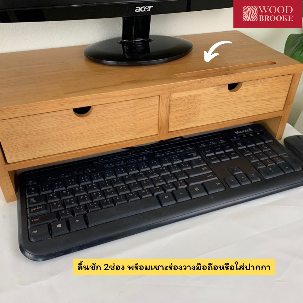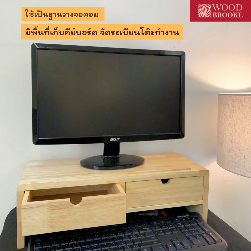 Woodbrooke ชั้นวางจอคอมแบบมีลิ้นชัก (ไม้จริง)ไม้ยางพารา