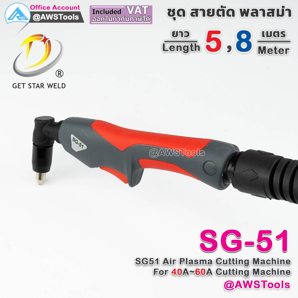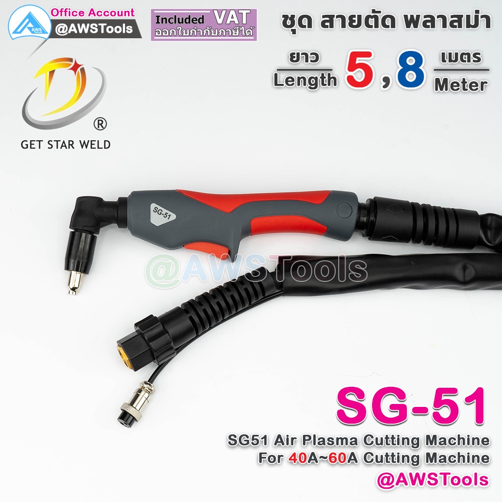 GSW สายตัด พลาสม่า รุ่น SG-51 เลือก ความยาวได้ 5 และ 8 เมตร สำหรับ เครื่องตัดพลาสม่า ขนาด 40A-60A #SG-51