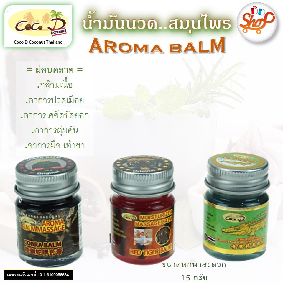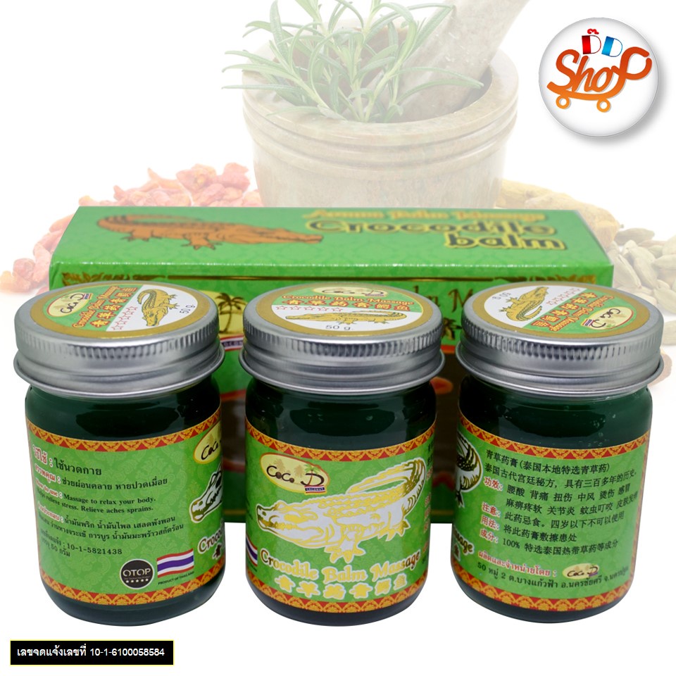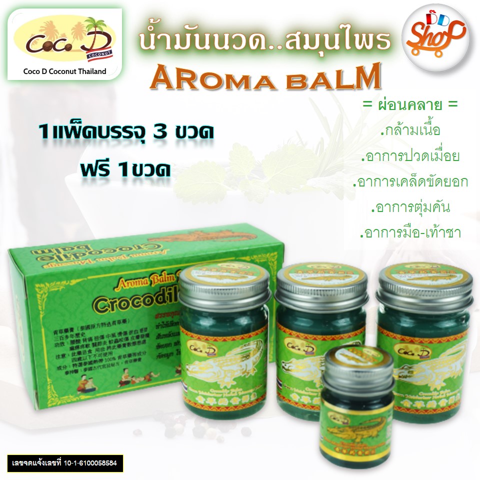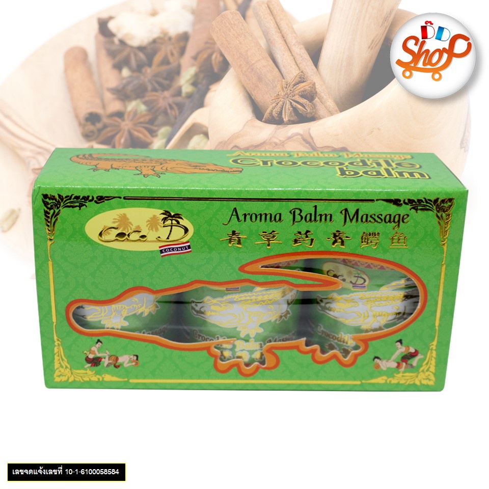 CoCo D"COCONUT" CROCODILE BALM ยาหม่อง บรรเทาอาการปวดเมื่อยกล้ามเนื้อ ขนาด 50 กรัม แพ็ค 3 ขวด