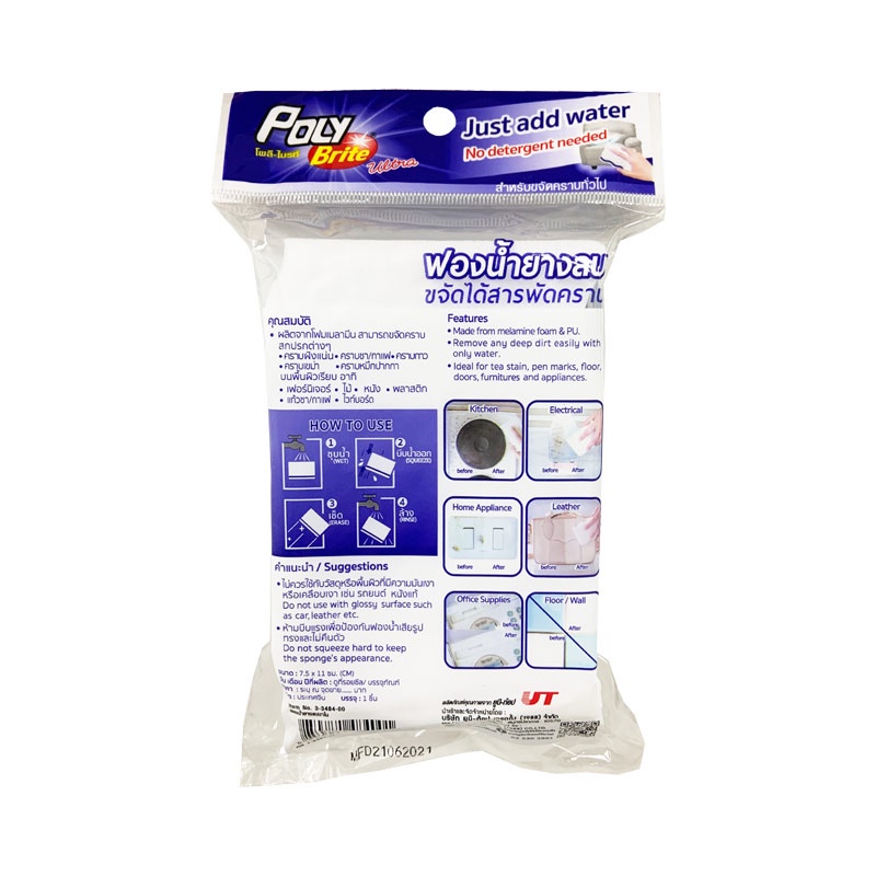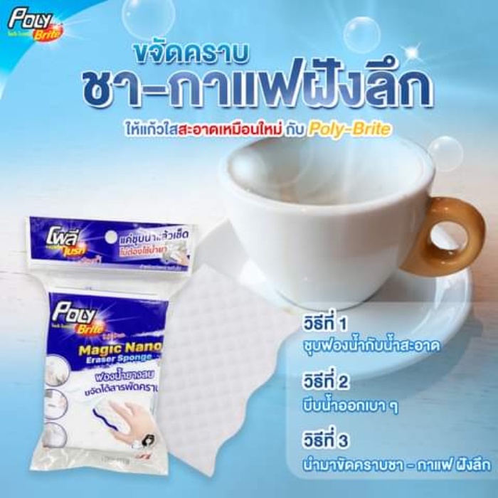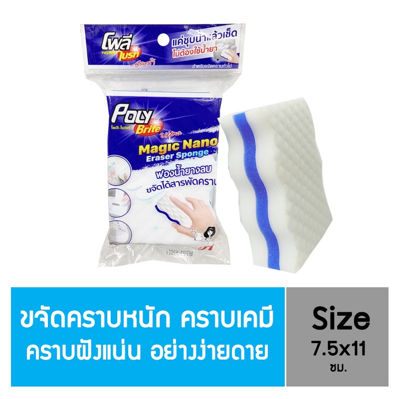 Poly-Brite Ultra โพลี-ไบรท์อัลตร้า ฟองน้ำยางลบนาโน รุ่น Curve Shape ขจัดคราบฝังแน่น ไม่ต้องใช้น้ำยา ลบรอยอเนกประสงค์