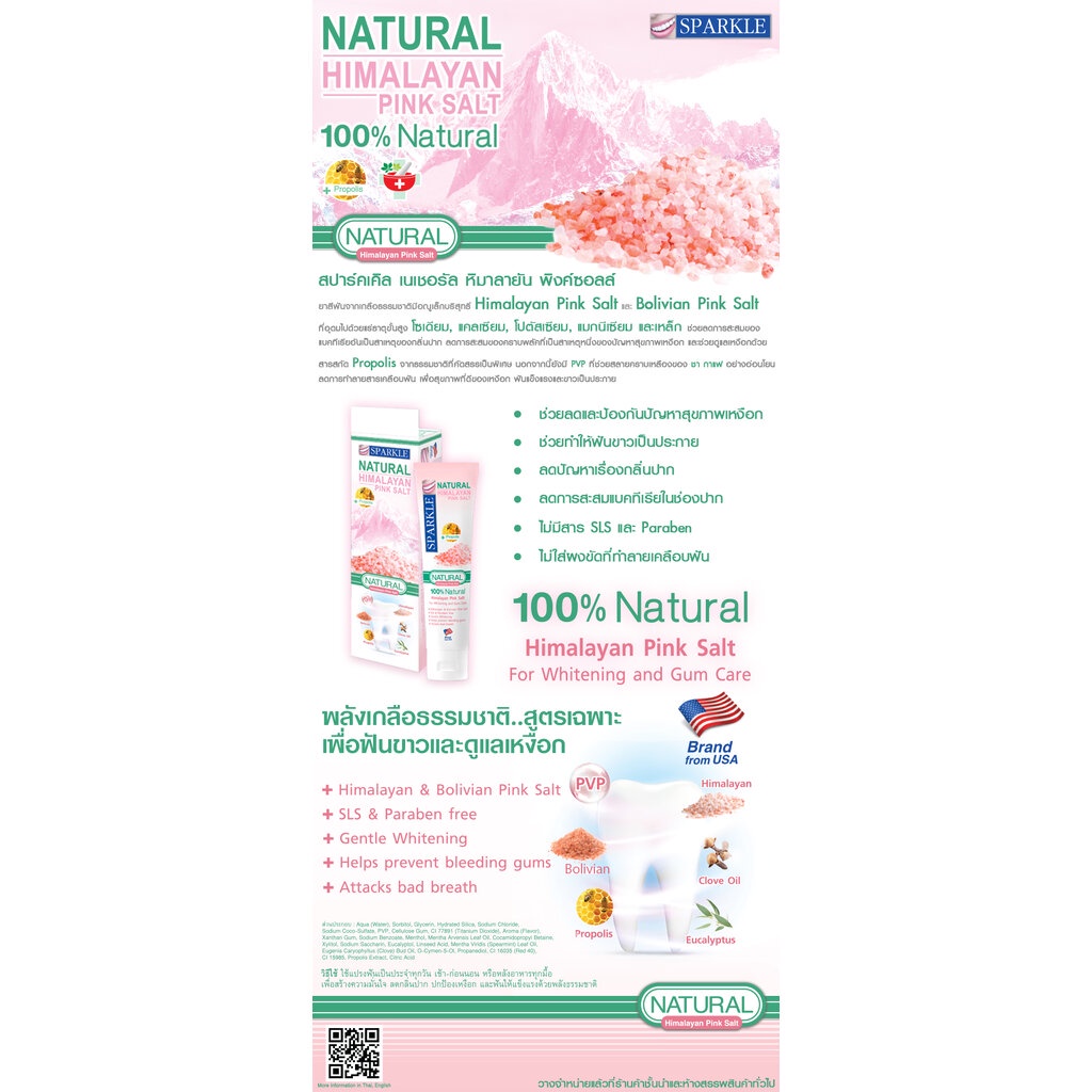 Sparkle สปาร์คเคิล ยาสีฟัน เนเชอรัล หิมาลายัน พิงค์ซอลล์ 100 กรัม