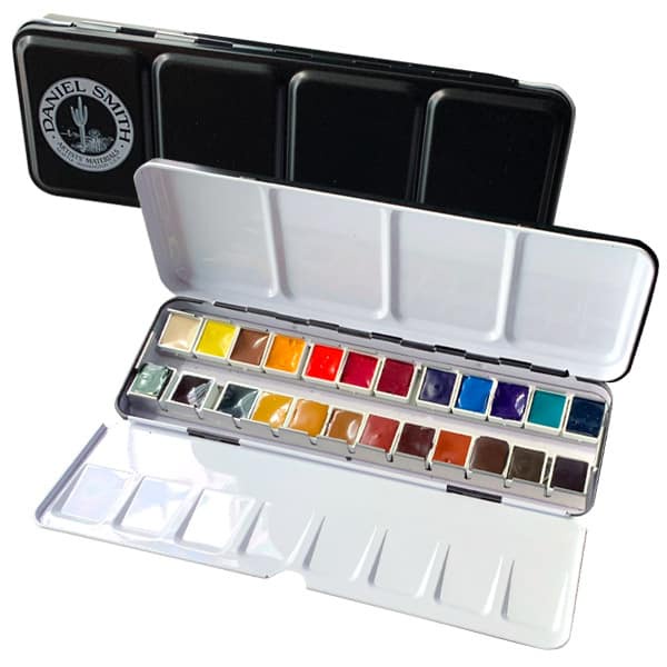 Daniel Smith 24 Color HAND POURED Watercolor Half Pan Set in a Metal Box (W285650113)