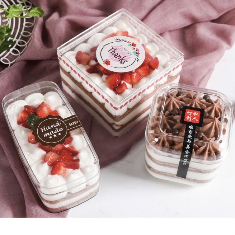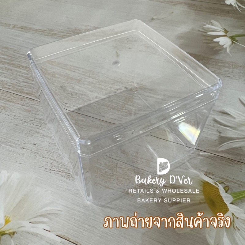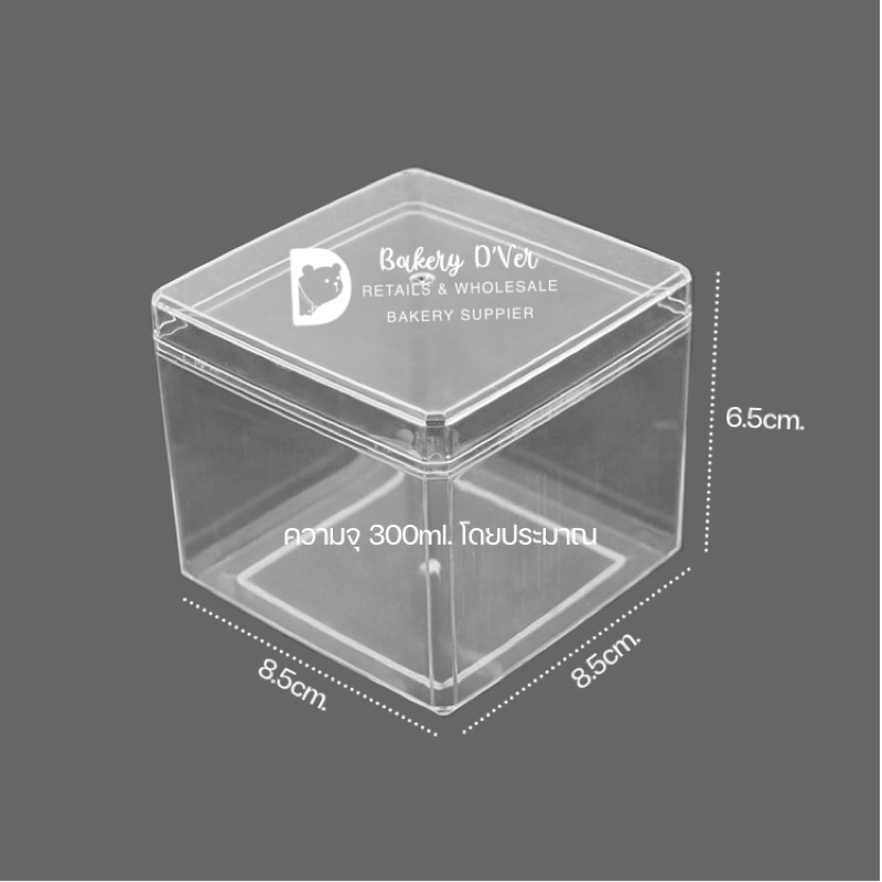 กล่องมูสพลาสติกแข็งสี่เหลี่ยมจตุรัส PS009 ขนาด 8.5*8.5cm. แพค 6 ใบ ความจุ 300ml. กล่องใส่คุกกี้