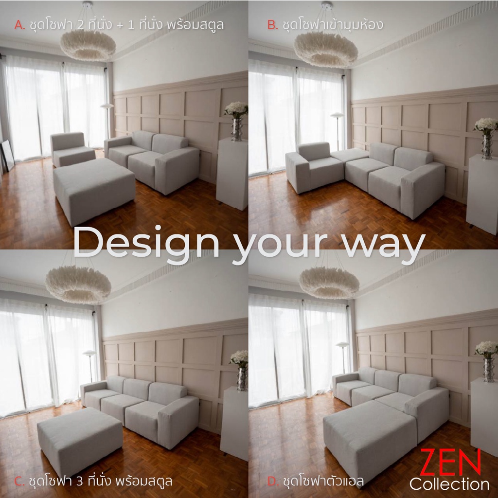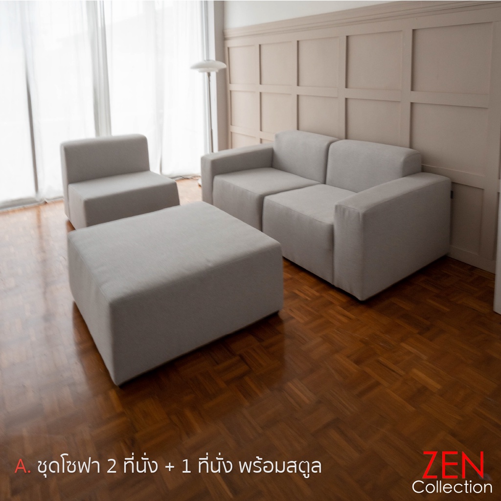 ZEN Collection ส่งฟรี กทม.ปริมณฑล !! โซฟา I-Shape 2.40m. พร้อมสตูล DAISY Modular Set หุ้ม Korean Style Fabric