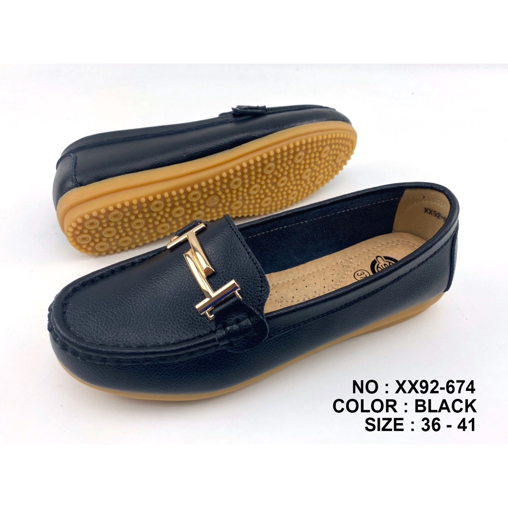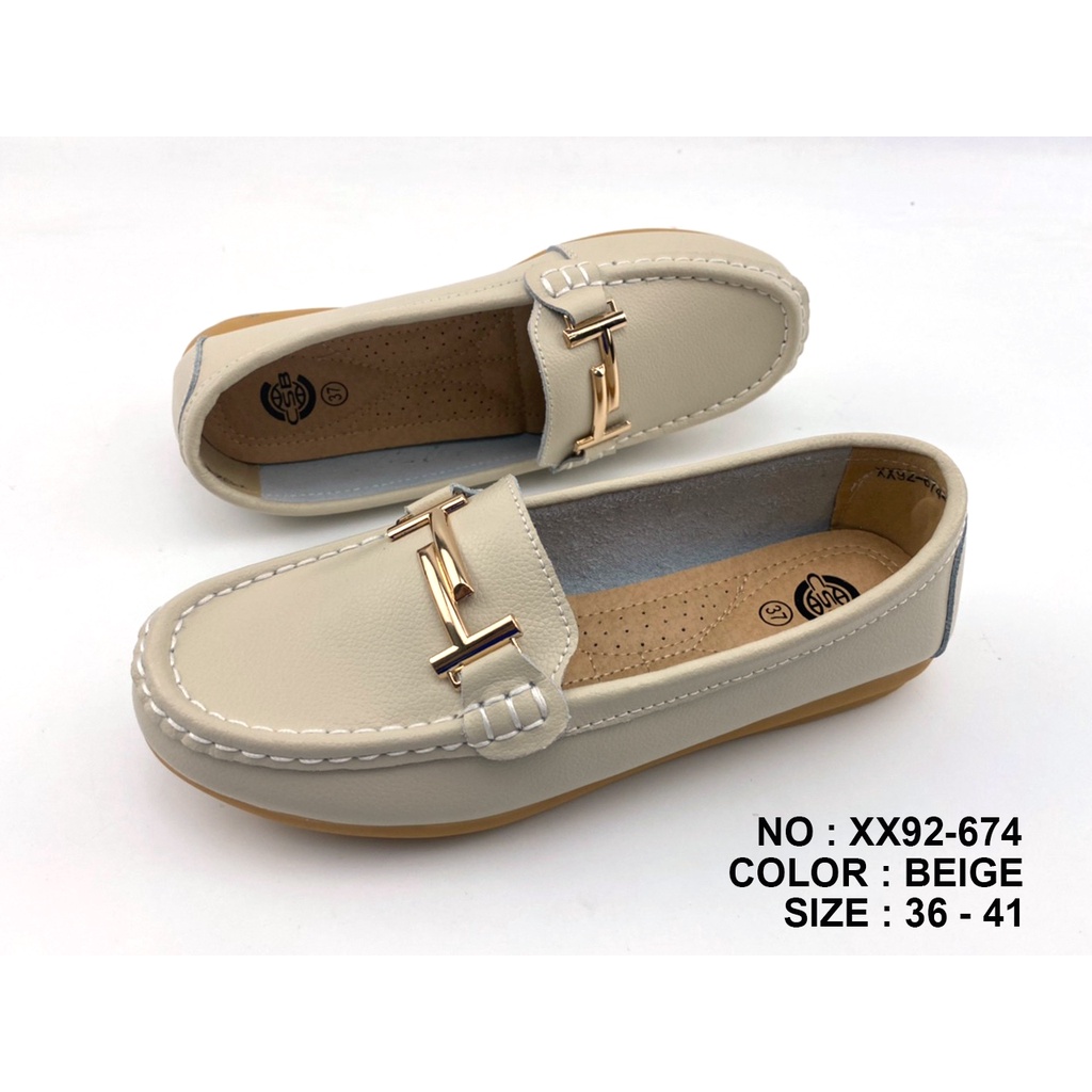 CSB รองเท้าหนังวัว XX92-674 แฟชั่นผู้หญิง คาดอะไหล่ H สีทอง พื้นกันลื่น