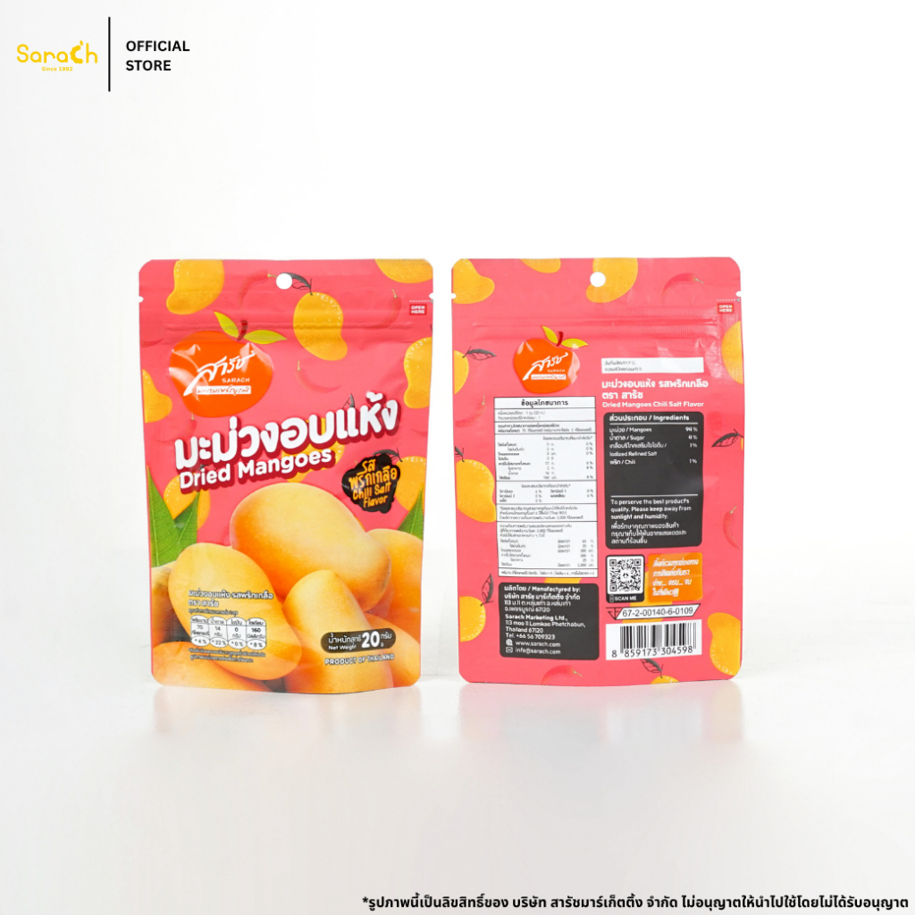 มะม่วงนุ่ม รสพริกเกลือแซ่บ 20 กรัม - 52 กรัม - Soft Dried Mangoes (Spicy Flavor)