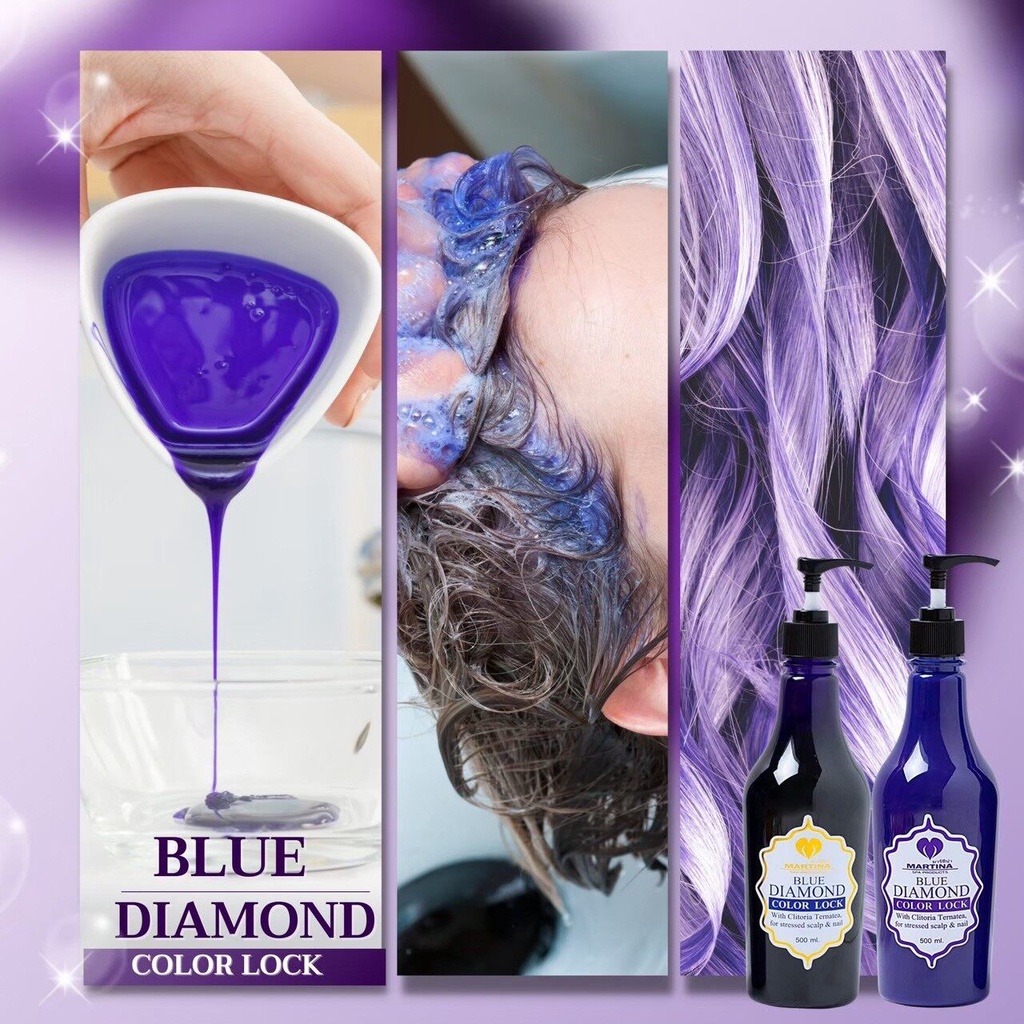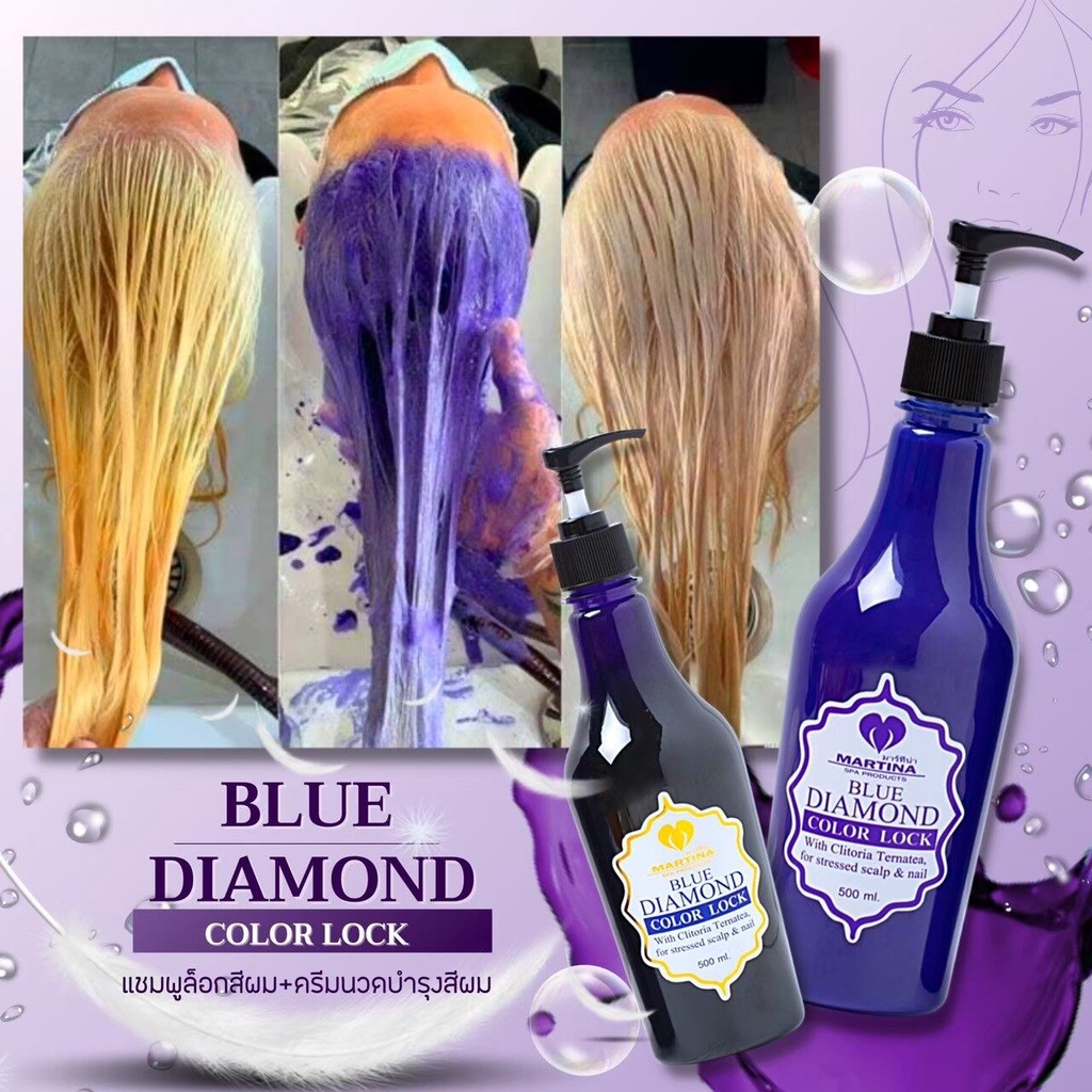 ชุดแชมพู & ครีมนวด 2ขวด1000ml. Blue Diamond Color Lock ฆ่าล้างสี ส้ม เหลือง แดง ล็อกสีผม เพิ่มประกายสีผม