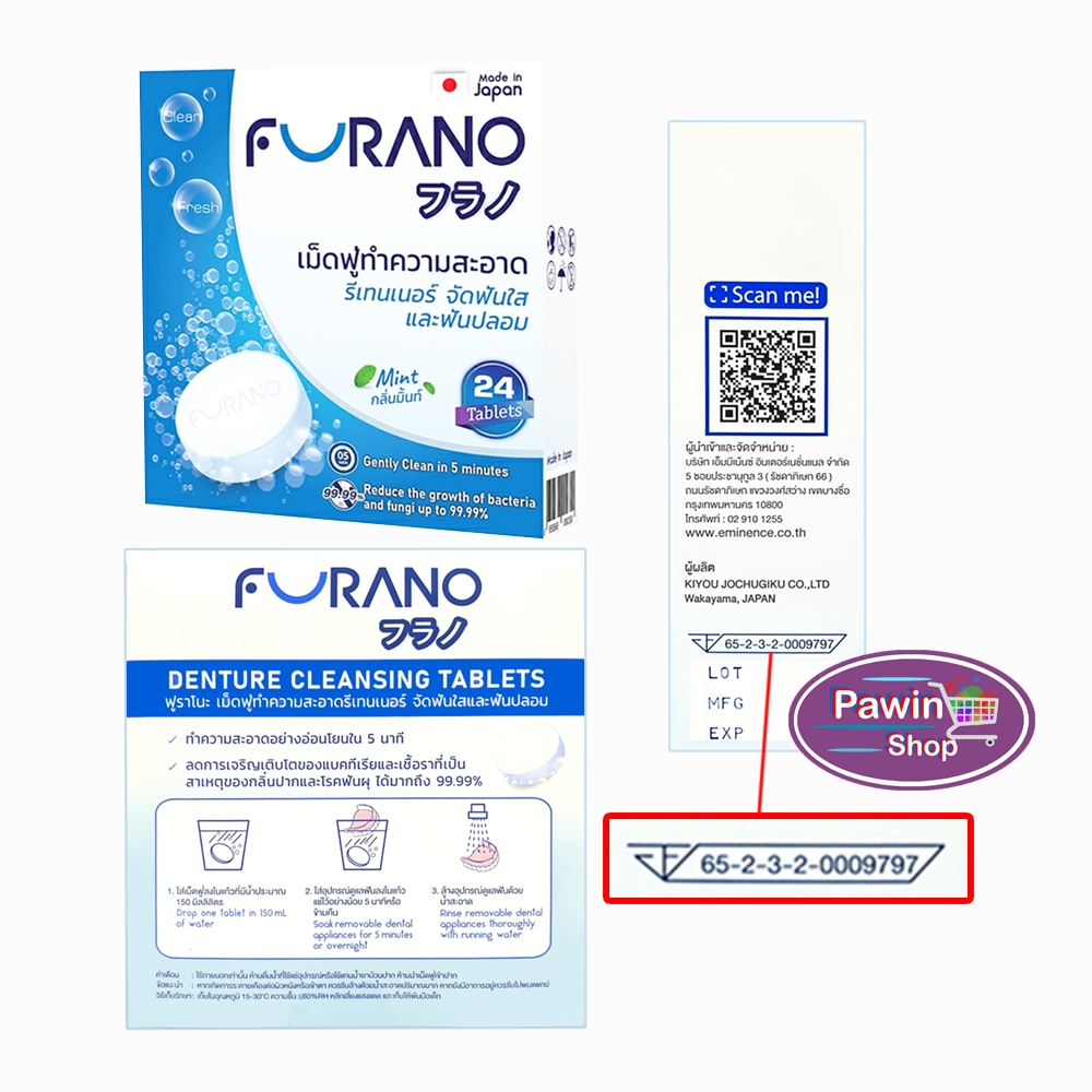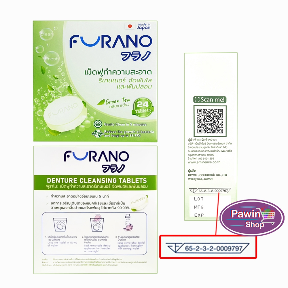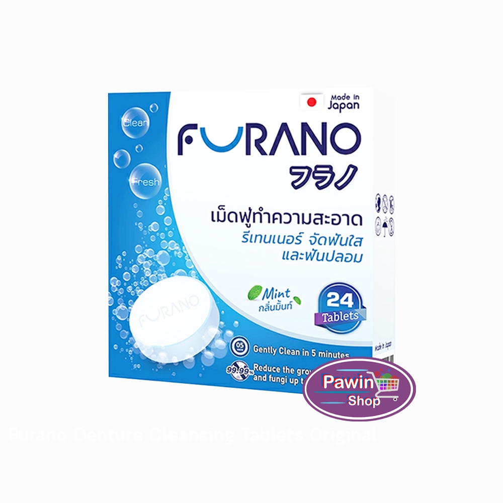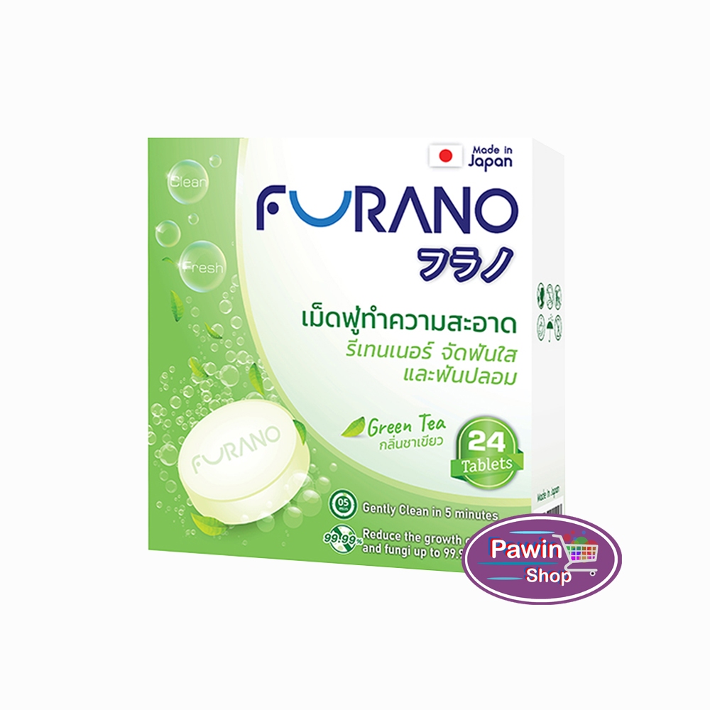 Furano เม็ดฟู่ทำความสะอาด ฟันปลอมและรีเทนเนอร์ เม็ดฟู่ล้างรีเทนเนอร์ บรรจุ 24 เม็ด [1 กล่อง] CC 120X กลิ่นมิ้น,ชาเขียว
