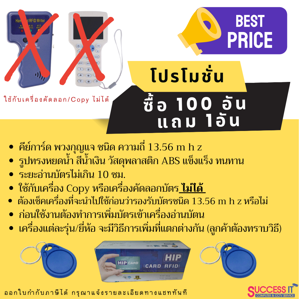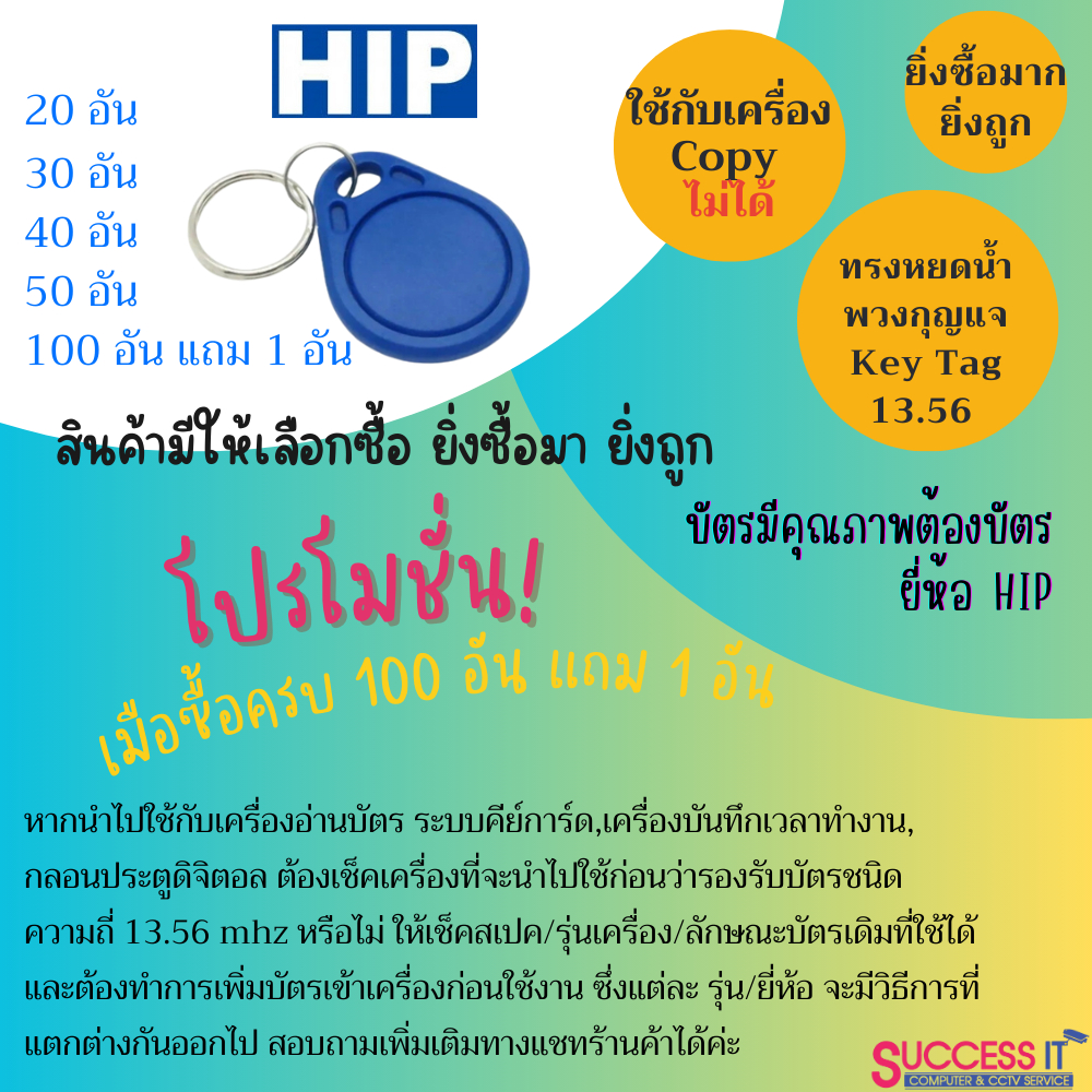 HIP คีย์การ์ด คีย์แท็ก พวงกุญแจ ทรงหยดน้ำ สีน้ำเงิน ใช้กับเครื่องอ่านบัตรความถี่ 13.56mhz ยี่ห้อ HIP