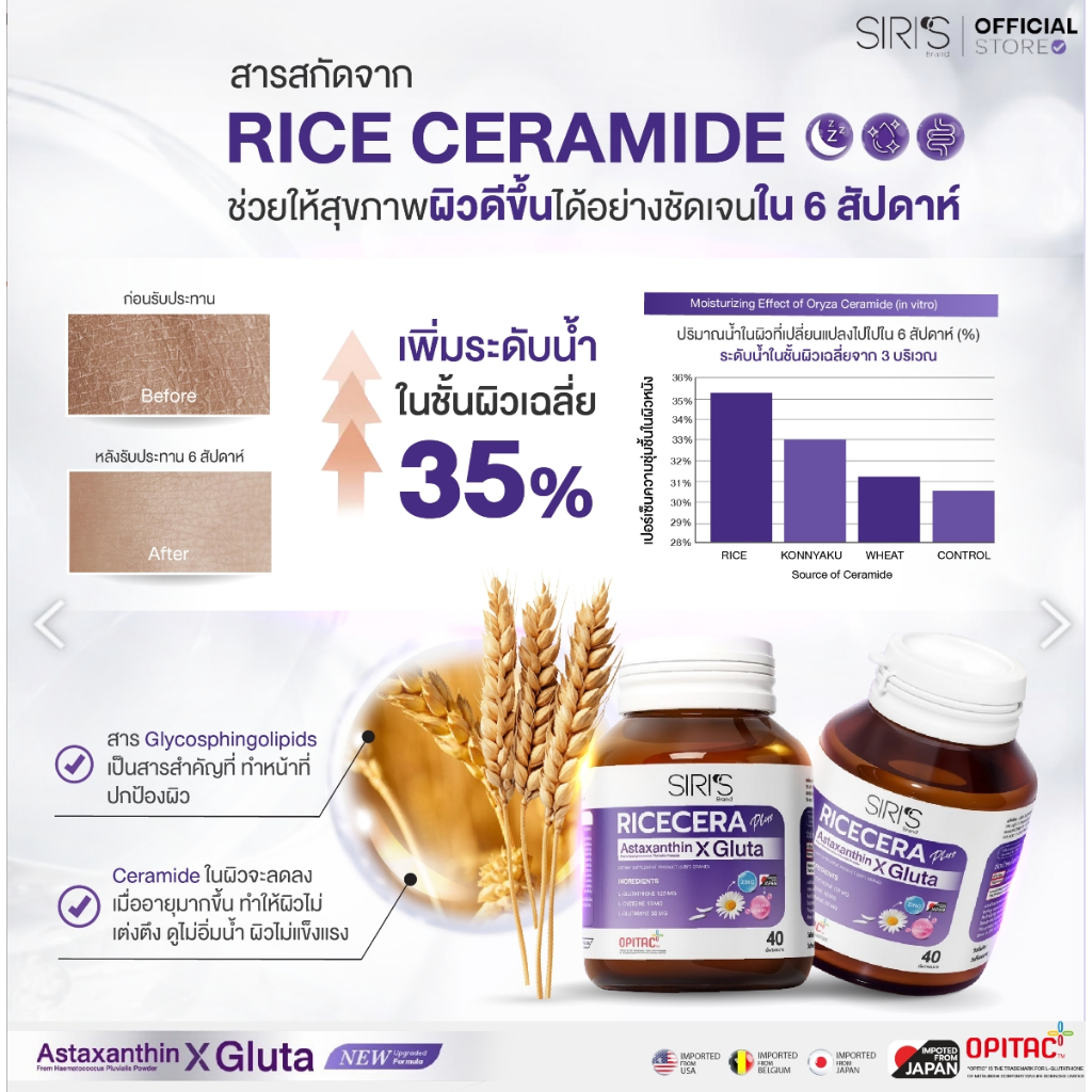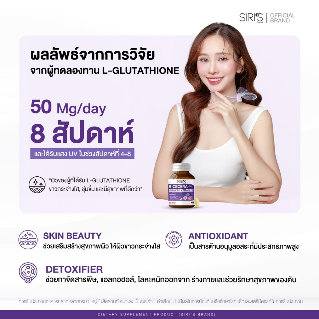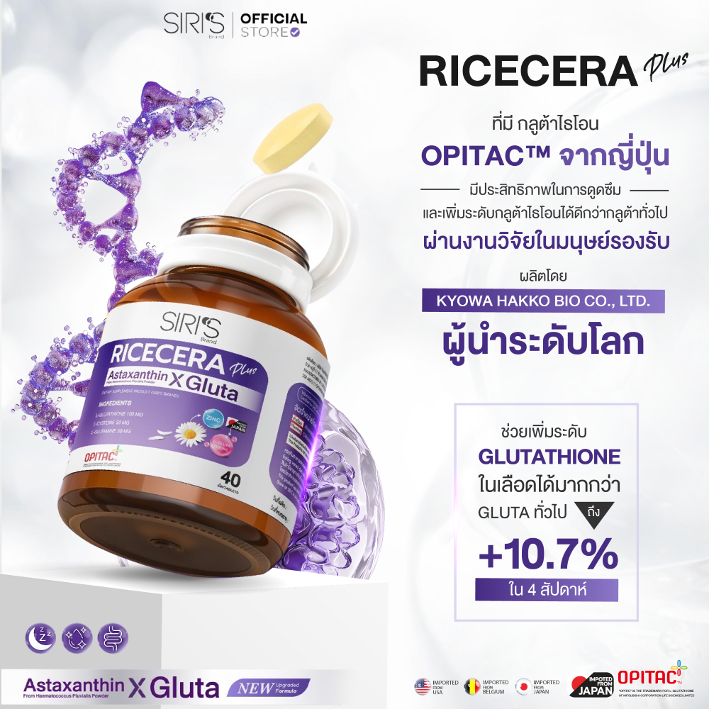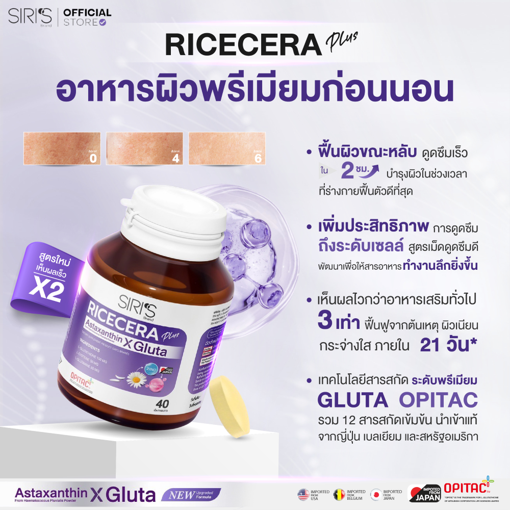 สูตรใหม่ 40 เม็ด RICECERA Plus Astaxanthin X Gluta ไรซ์เซร่า พลัส แอสต้าแซนธิน-กลูต้าแท้