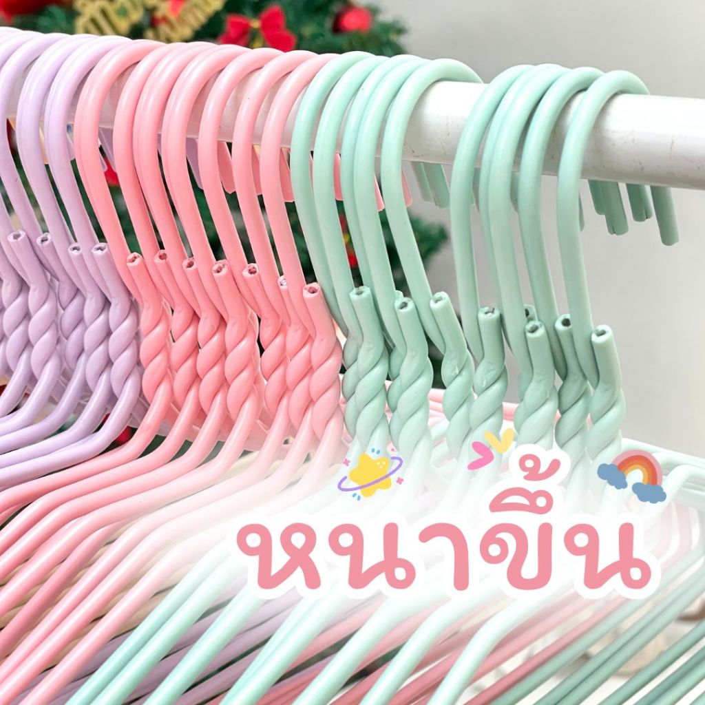 ไม้แขวนเสื้อ หนาพิเศษ สีพาทเทล pastel น่ารัก ไม้แขวน ลวดหุ้มพลาสติก แพ็คละ 10 ชิ้น #Home_2026