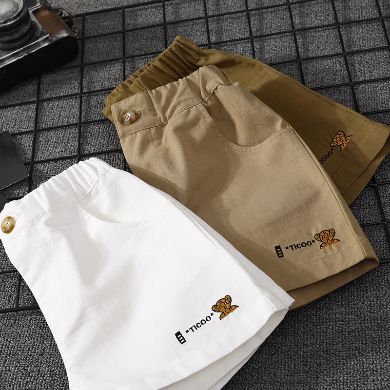 กางเกงขาสั้นสีขาวเด็กชายสวมฤดูร้อนบางผ้าฝ้ายเด็กกางเกงสีกากีกลางและใหญ่เด็กกางเกงอินเทรนด์
