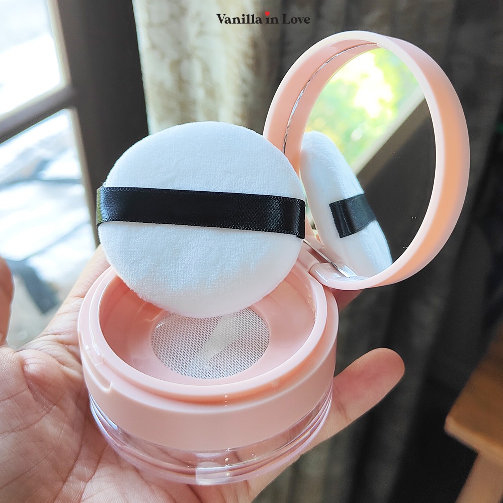 BA10 ตลับใส่แป้งเปล่า 20 กรัม ตาข่ายกระจายแป้ง พร้อมพัฟ สีชมพูอ่อน