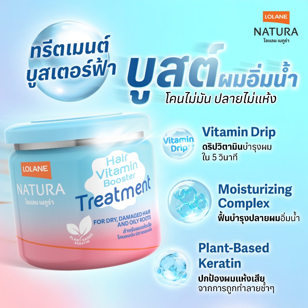 (ครบทุกสูตร) โลแลน เนทูร่า แฮร์ ไวตามิน บูสเตอร์ ทรีตเมนต์ Lolane Natura Hair Vitamin Booster Treatment 100/250/500g.