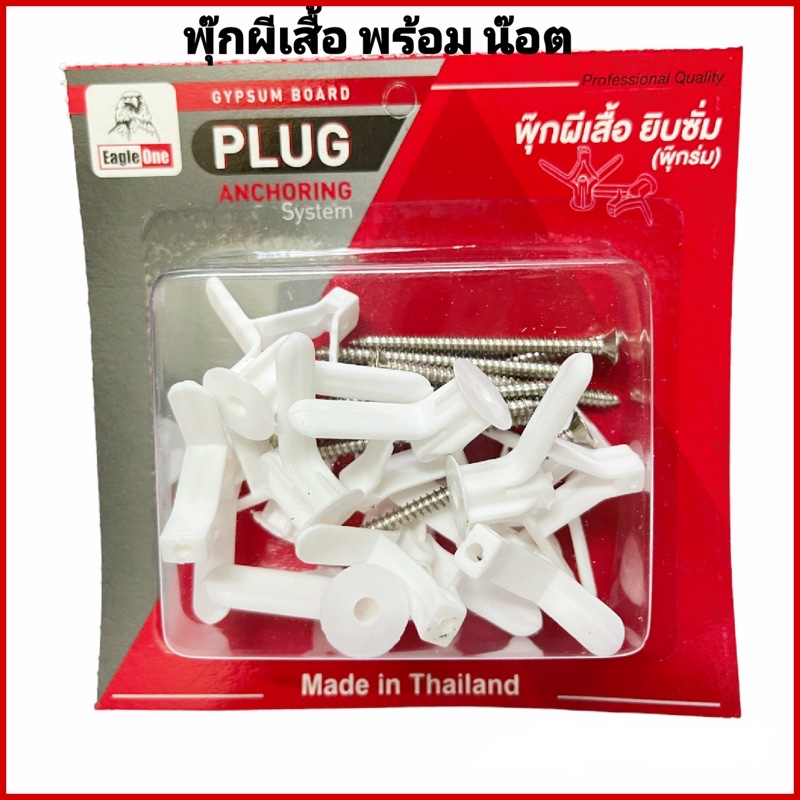 (ราคาต่อแพค)#พุ๊กผีเสื้อ พุกร่ม พุกยิบซั่มพลาสติก 1 แพคพร้อมน๊อต 10 ตัว
