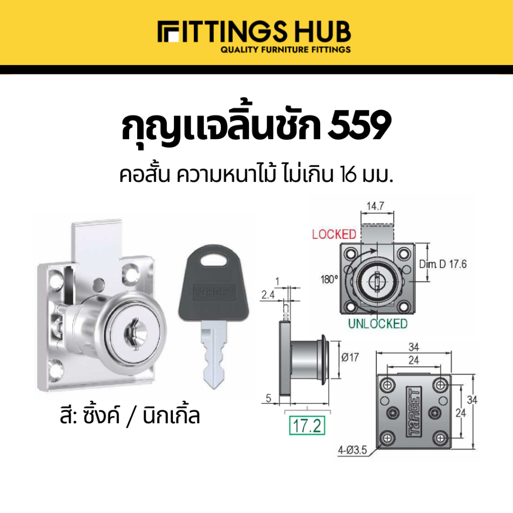 [1 ชุด] กุญแจลิ้นชัก ล็อคลิ้นชักโต๊ะทำงาน ลิ้นชักเก็บของ ตู้เสื้อผ้า กุญแจล็อกเฟอร์นิเจอร์
