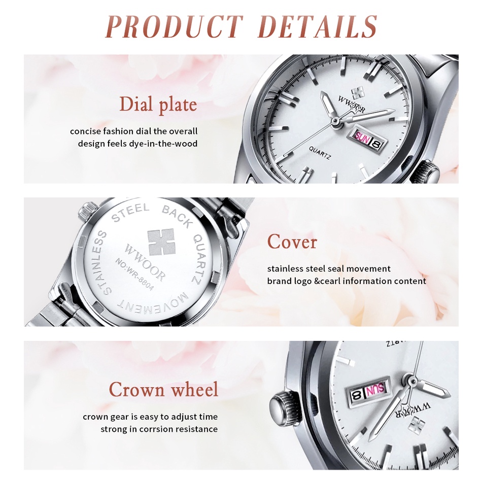 Wwoor นาฬิกาข้อมือลําลอง กันน้ํา มีปฏิทิน สําหรับผู้หญิง -8804