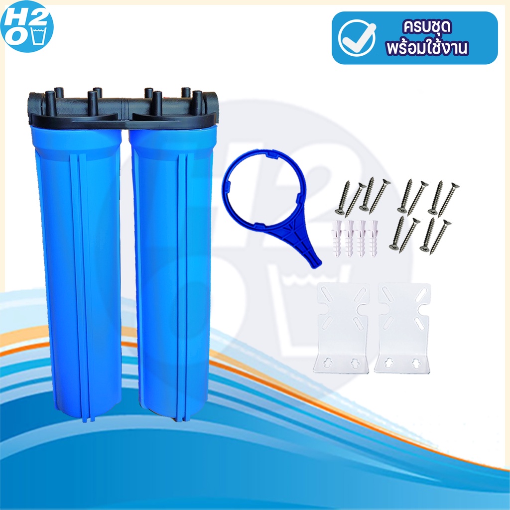 iFresh กระบอกกรองน้ำ เครื่องกรองน้ำ เครื่องกรองน้ำใช้ 2ขั้นตอน 20 นิ้ว Housing สีน้ำเงิน กระบอกติดกัน ท่อคู่
