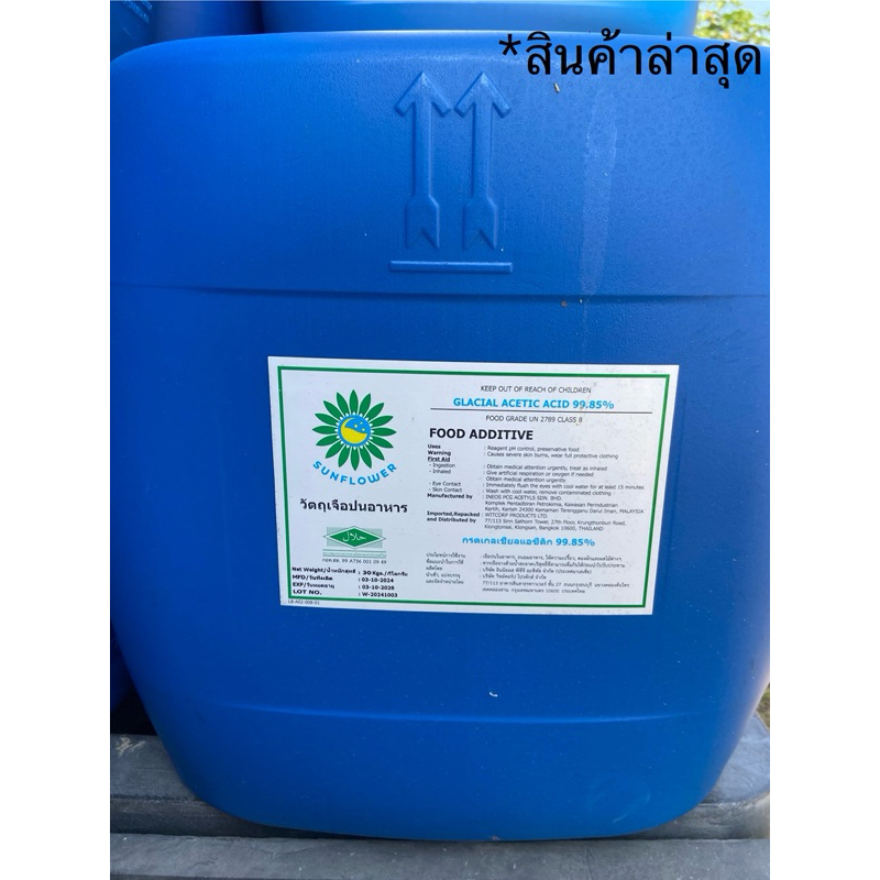 กรดน้ำส้ม : กรดแอซิติก /aceitc acid แกลลอนละ 30 กิโล / 30 Kg. (อังกฤษ/UK)