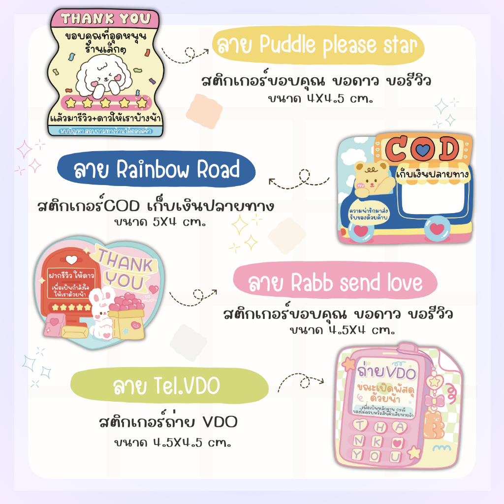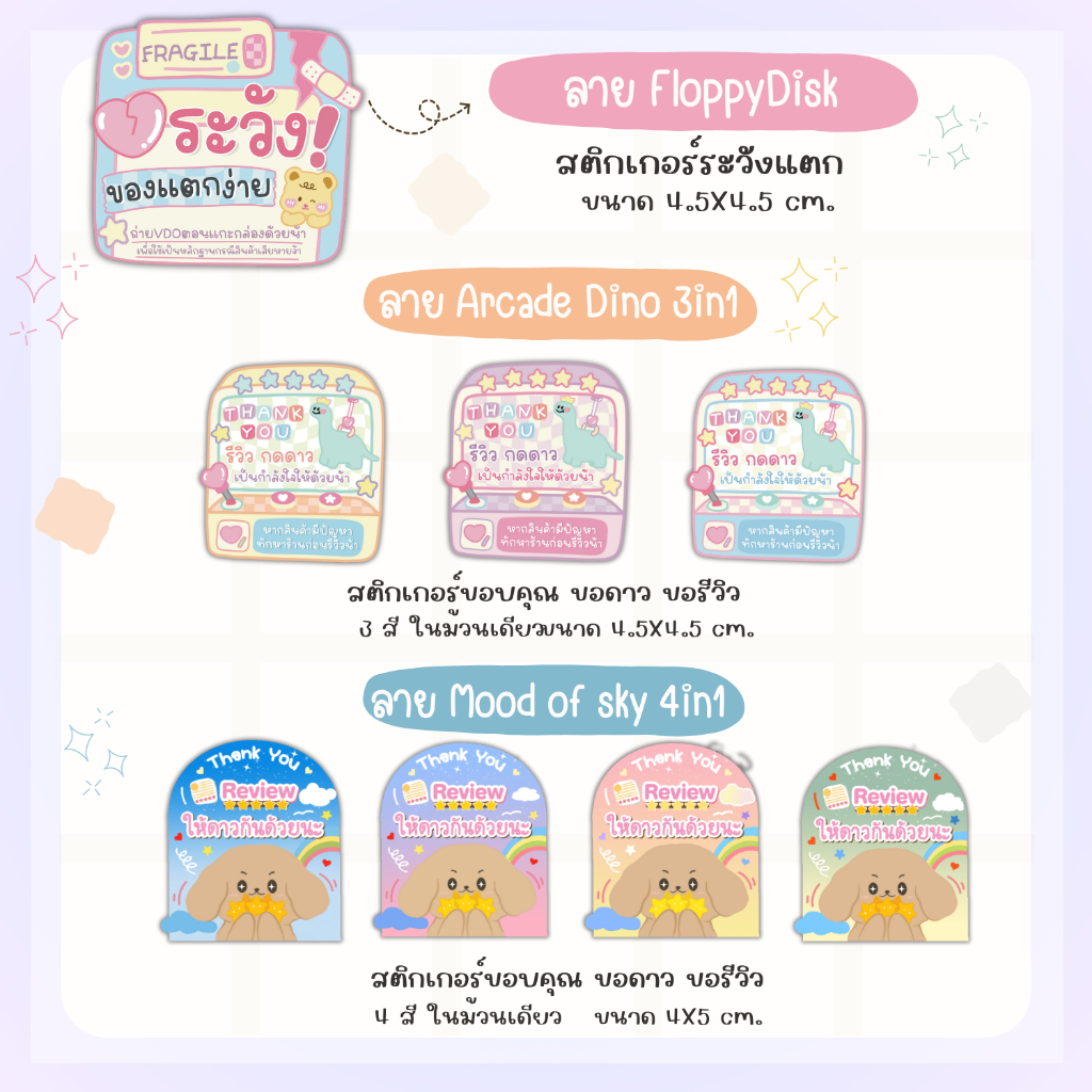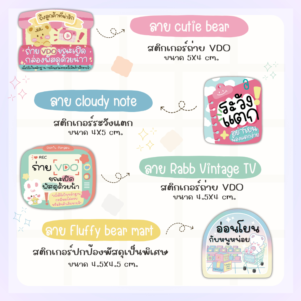 รวม สติกเกอร์แปะกล่องพัสดุ สติกเกอร์ลายน่ารัก สติกเกอร์ระวังแตก สติกเกอร์ถ่ายวีดีโอ สติกเกอร์ขอบคุณ