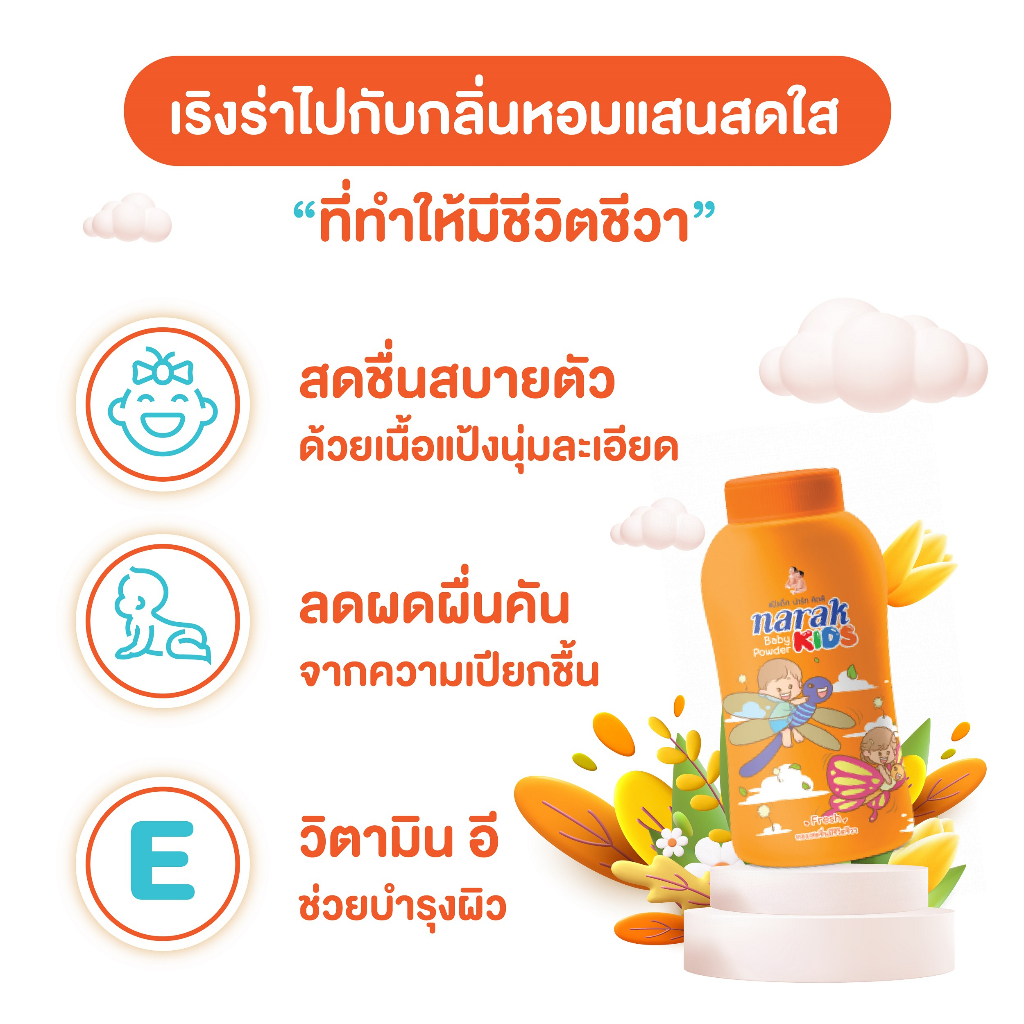 narak แป้งเด็กน่ารัก คิดส์ เฟรช สีส้ม 150 ก. แพ็คคู่
