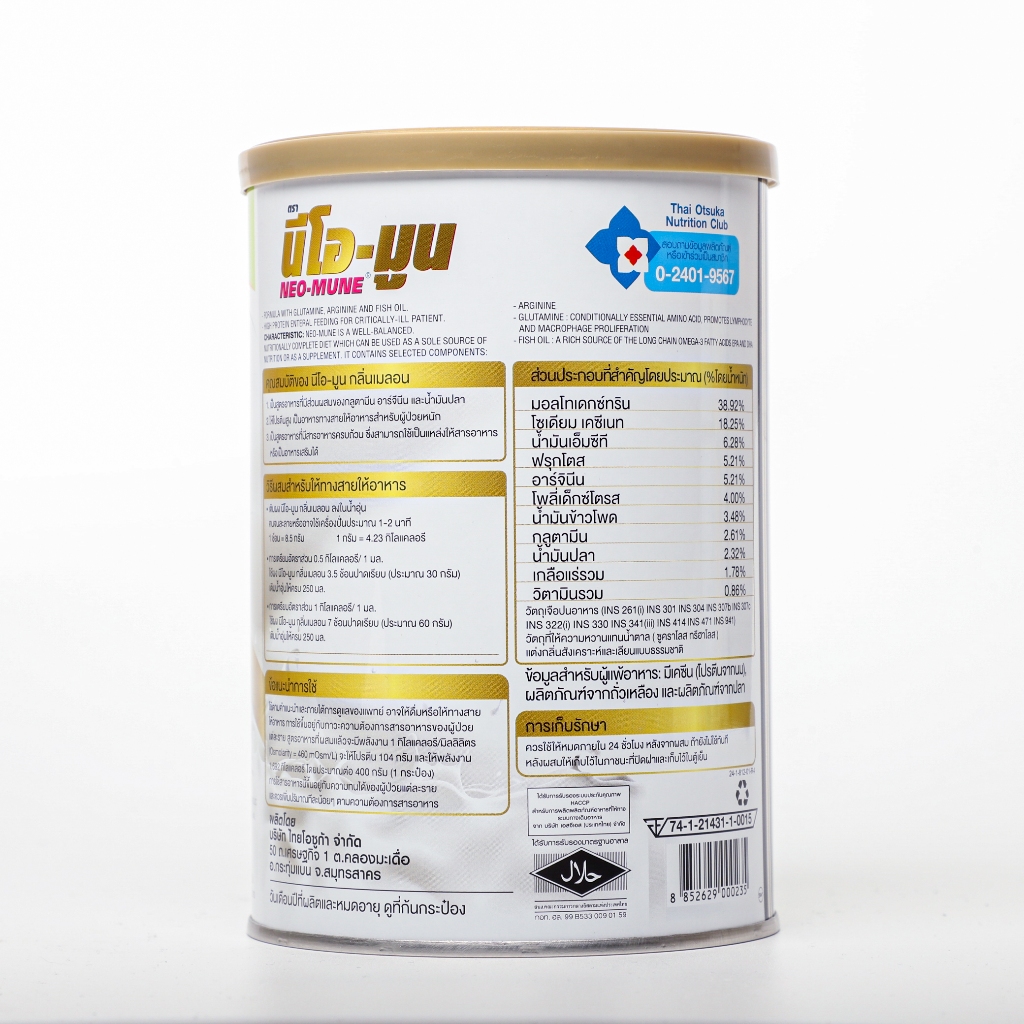 NEO-MUNE Melon Flavor 400 g. นีโอ-มูน กลิ่นเมล่อน 400 g.อาหารชนิดผงสำหรับผู้ต้องการโปรตีนและพลังงานสูง จำนวน 2 กระป๋อง
