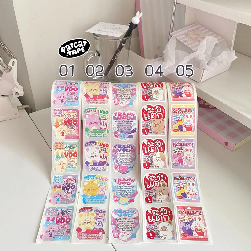 [Fatcat.tape ]สติ๊กเกอร์ 250 ดวง 📦แปะะกล่องพัสดุ ระวังแตก ถ่ายคลิปวิดีโอ ลายน่ารัก สติ๊กเกอร์ขอบคุณ Thankyou
