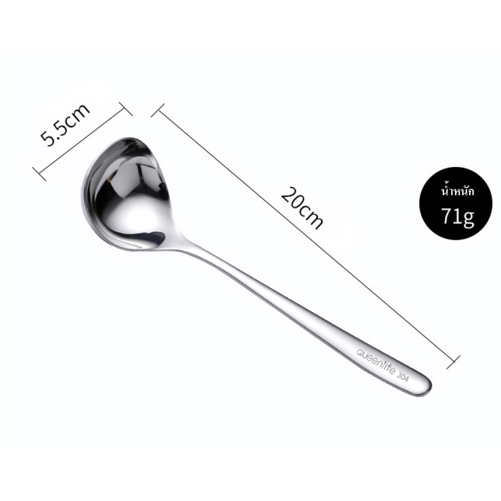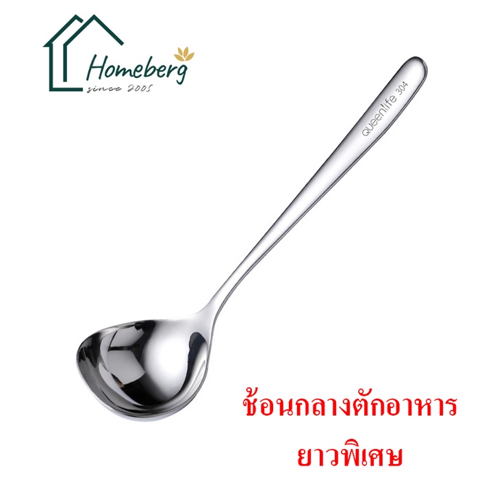 HOMEBERG ช้อนกลาง ช้อนสแตนเลส สแตนเลส304 ของใช้ในครัว ขนาดยาวพอเหมาะ แข็งแรง ทนทาน ไม่นำความร้อน