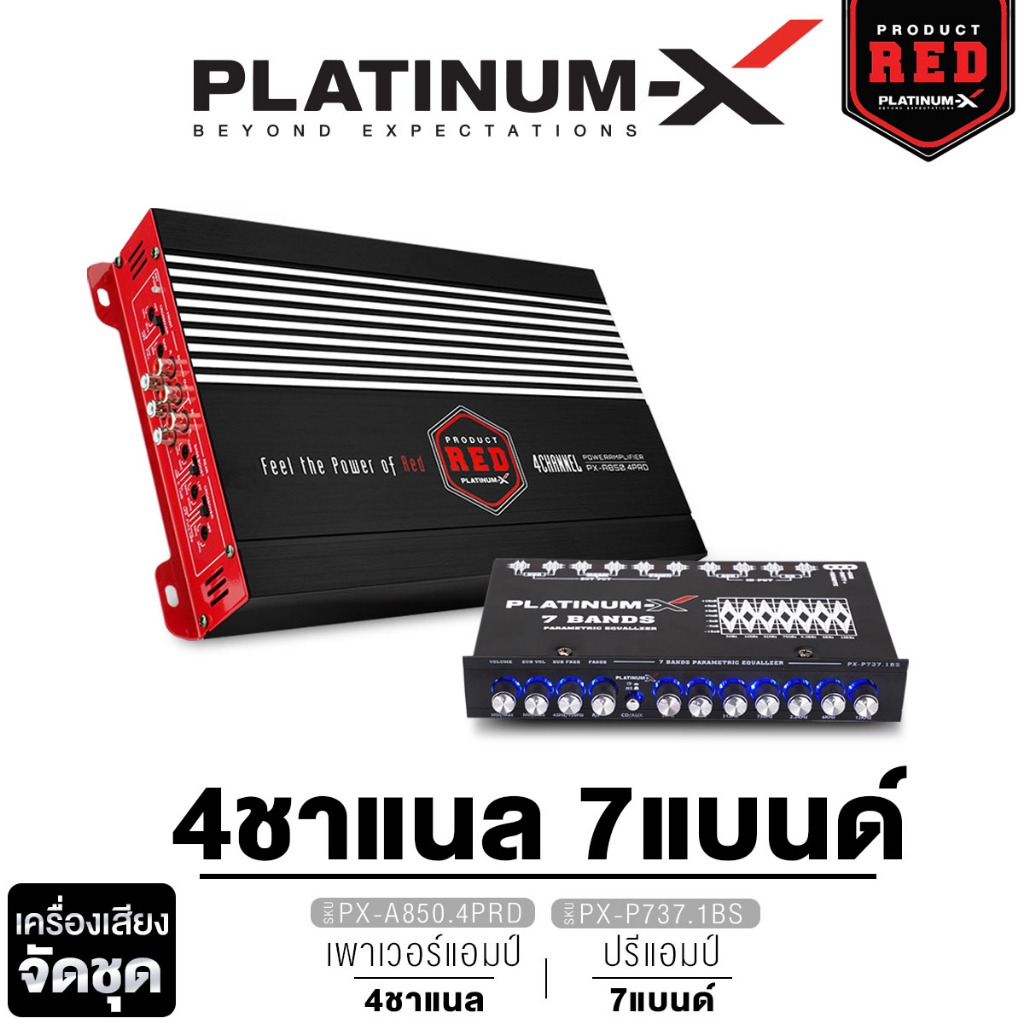 PLATINUM-X จัดชุด เพาเวอร์แอมป์ แอมป์ขยายเสียง แอมป์ AB 4 CH + ปรีแอมป์ 7แบนด์ เครื่องงเสียงรถยนต์