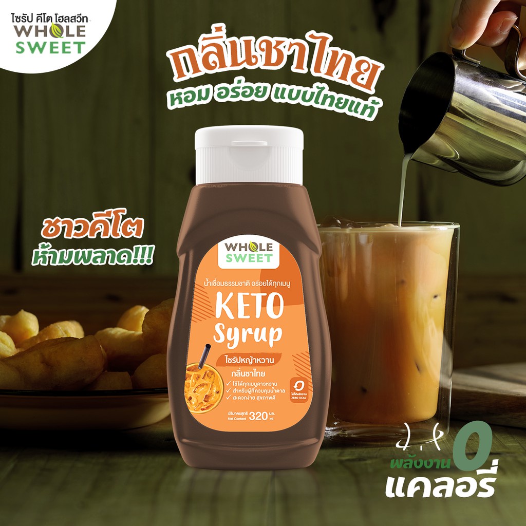Whole Sweet โฮลสวีท ไซรัปหญ้าหวาน กลิ่นชาไทย 320 มล. (Who06) สูตรคีโต Keto น้ำเชื่อมหญ้าหวาน