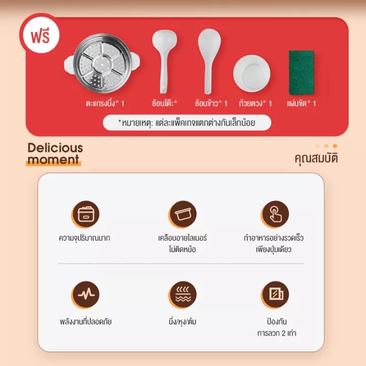 LENODI 1.5L/2L/3L หม้อนึ่ง หม้อปรุงอาหารสำหรับหอพักเล็กๆและผู้สูงอายุ หม้อหุงข้าวเล็ก หม้อหุงข้าว 1.5ลิต