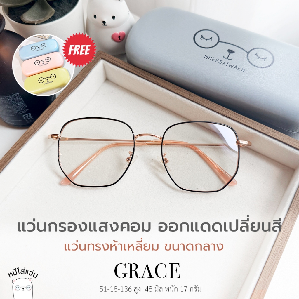 ตัดแว่นสายตาสั้น มัลติโค้ต บลูบล็อค ออโต้ 1.56 แว่นกรองแสงคอม ออกแดดเปลี่ยนสี ตัดเลนส์ใหม่ รุ่น grace
