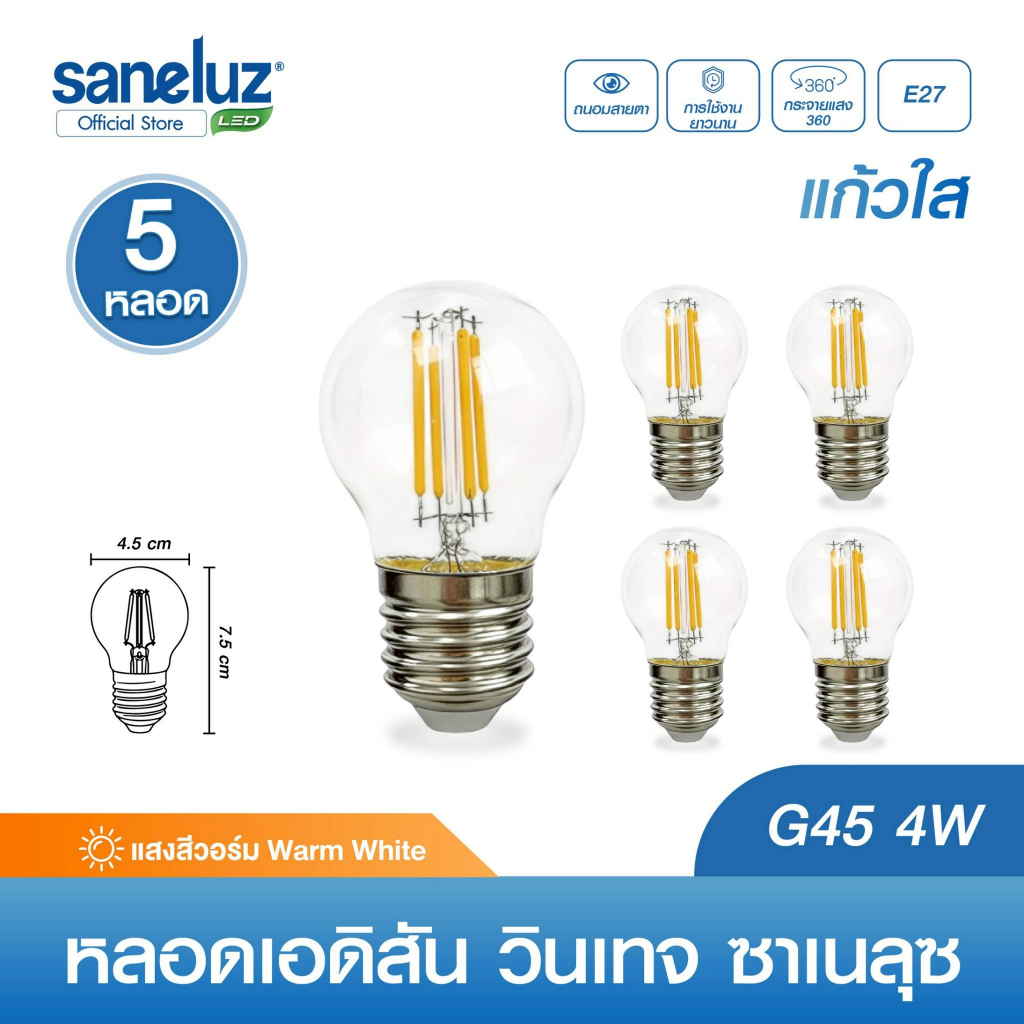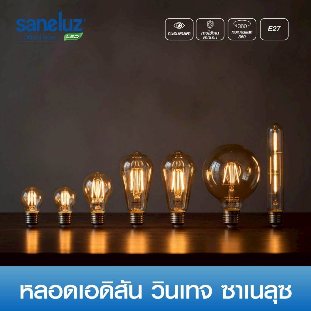 Saneluz 5 หลอด ไฟเอดิสัน LED รุ่น ST64 / A60 / G95 / G45 / T30-185 ขั้ว E27 ใช้ไฟ AC 220V Vintage หลอดไฟวินเทจ led