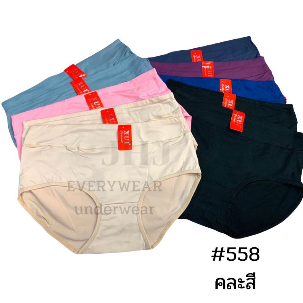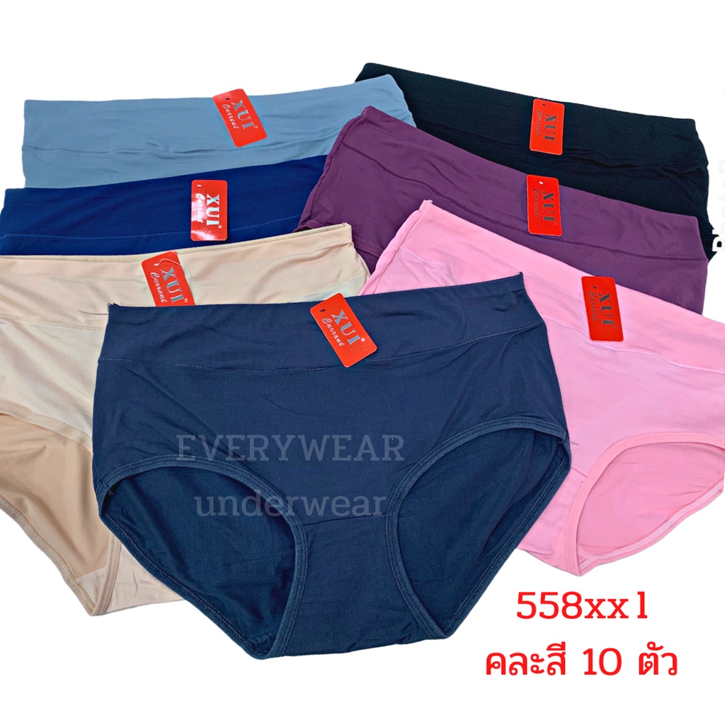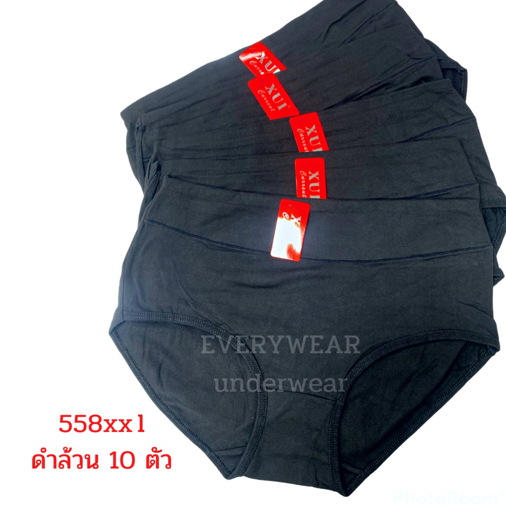 {10 ตัว} กางเกงในผู้หญิง ขอบพับ ขอบใหญ่ ป้าย XUI คละสี|ดำล้วน #558-#558xxl