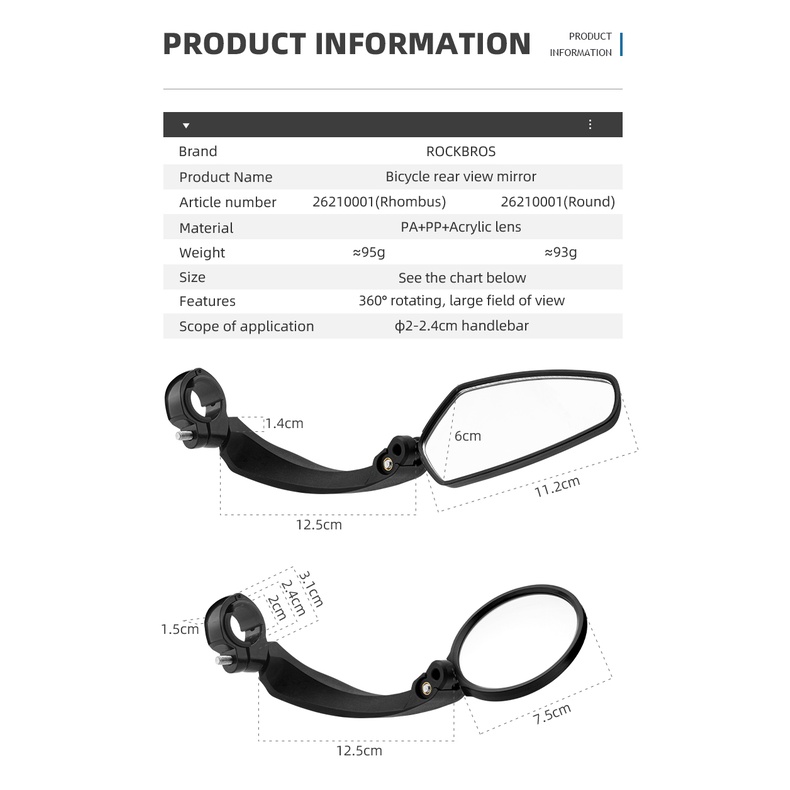 【TH Delivery】ROCKBROS กระจกมองหลัง HD 360 สําหรับจักรยาน°กระจกมองข้าง ปรับได้ สําหรับจักรยานเสือภูเขา