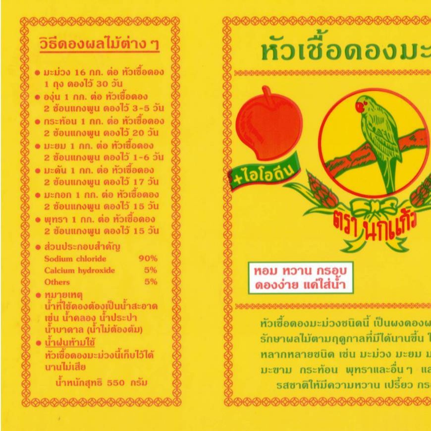 หัวเชื้อดองมะม่วง ตรานกแก้ว หัวเชื้อมะม่วงดอง หัวเชื้อดองผลไม้ หัวเชื้อทำมะม่วงดอง 600 กรัม