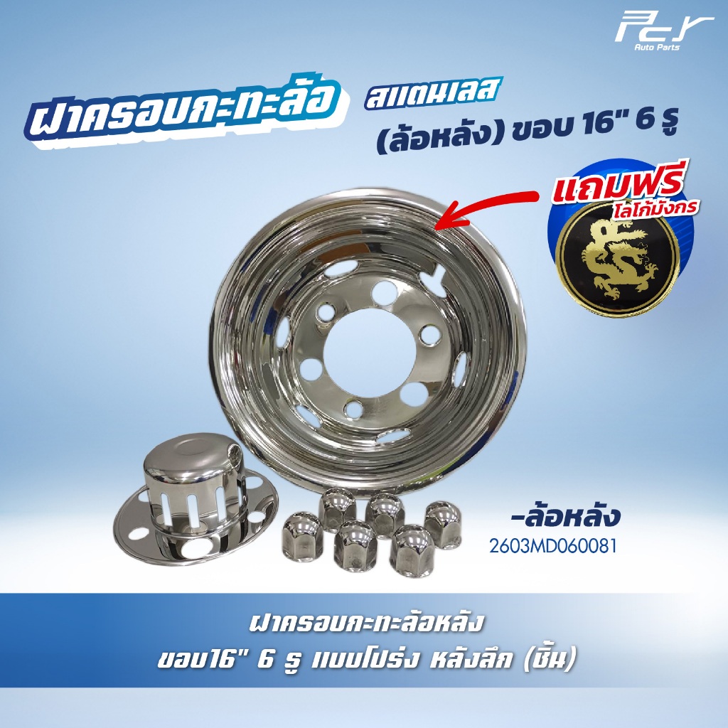 ฝาครอบกะทะล้อ หน้า-หลัง **ขอบ 16" 5 รู / 6 รู** แบบโปร่ง/แบบทึบ สแตนเลส *****แถมฟรี โล้โกมังกร ทุกชิ้น*****