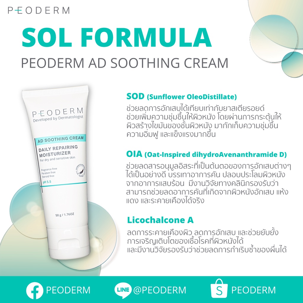 (Pack คู่) PEODERM AD Soothing Cream ครีมบำรุงผิวโดยแพทย์ผู้เชี่ยวชาญ สำหรับผู้ที่มีผิวแห้ง คัน ช่วยลดการอักเสบ ลดรอยแดง