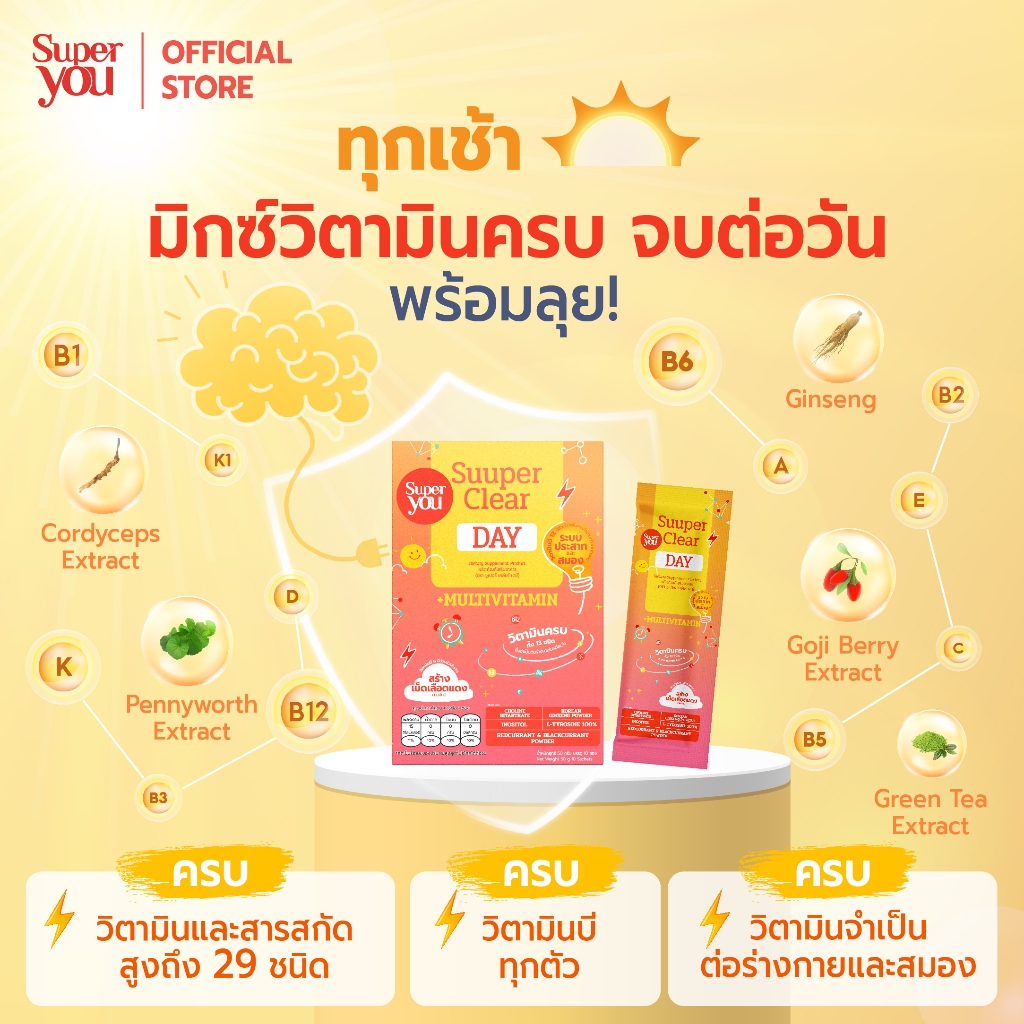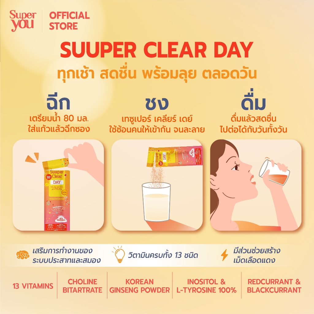 [x4 กล่อง] ซูเปอร์ เคลียร์ เดย์ (Suuper Clear Day) - (BRAIN+13 Multivitamin)