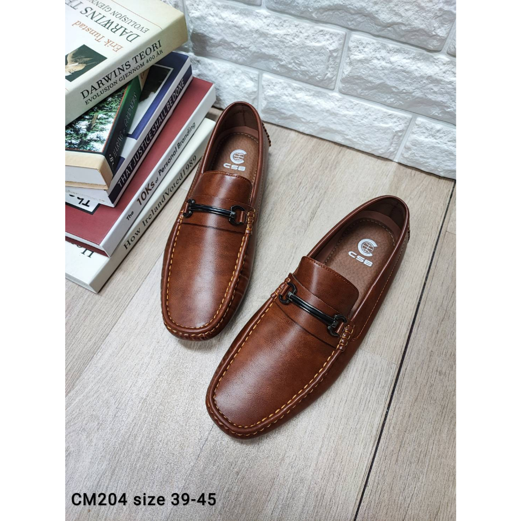 CM204รองเท้าลำลองผู้ชายพิ้นเตี้ยหนังเงาไม่มีส้นหน้าคาดอะไหล่