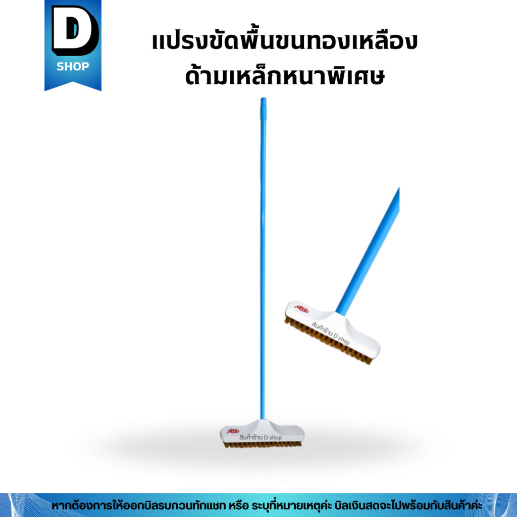 (ด้ามเหล็กหนาพืเศษ) แปรงขัดพื้นขนทองเหลือง ด้ามยาว 120,150 ซม. (คละสี)