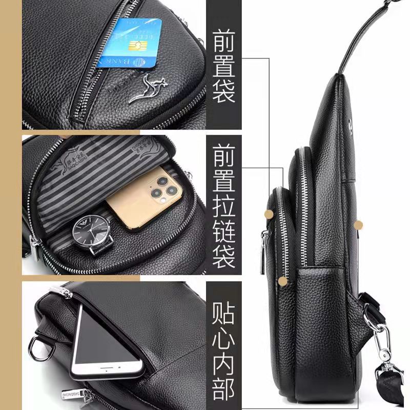 🔥ใส่โค้ด INCLZ12 ลด 50%🔥 กระเป๋าคาดหน้าอกผู้ชายหนังแฟชั่น