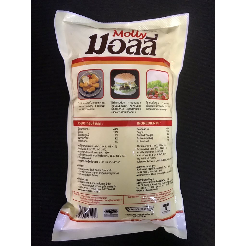 ยกลัง - Molly Mayonnaise มอลลี่ มายองเนส ขนาด 870 กรัม 12 ถุง