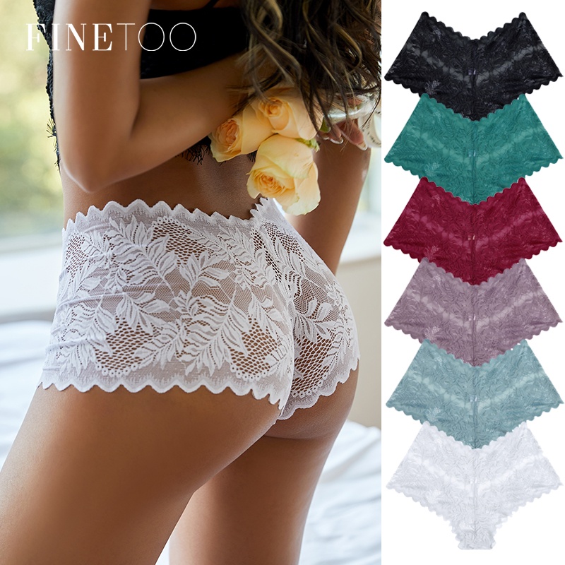 Finetoo กางเกงชั้นใน เอวต่ํา พิมพ์ลายลูกไม้ ดอกไม้ เซ็กซี่ ใส่สบาย สําหรับผู้หญิง ผู้ชาย ไซซ์ S-XL
