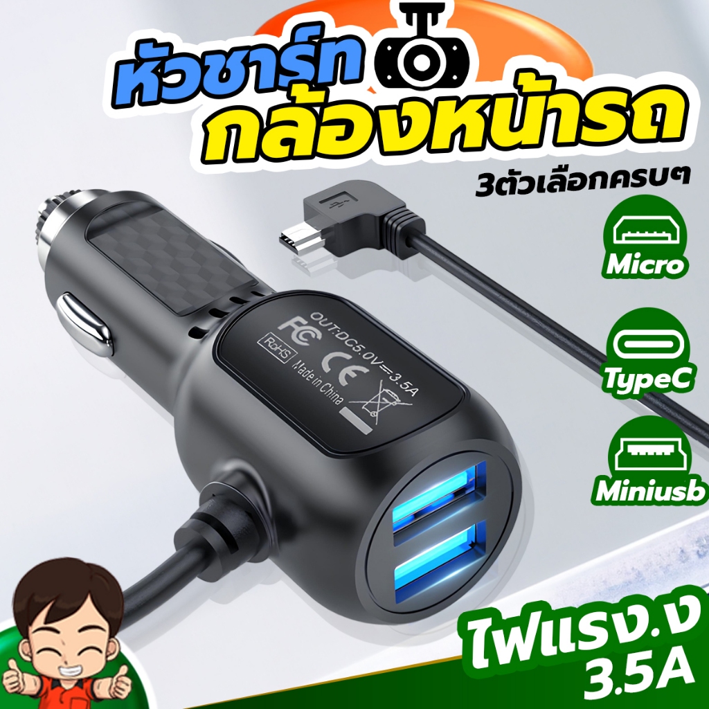 สายชาร์ทกล้องหน้ารถ Mini USB + ช่องเสียบUSB 2 ช่อง สำหรับชาร์ทมือถือ