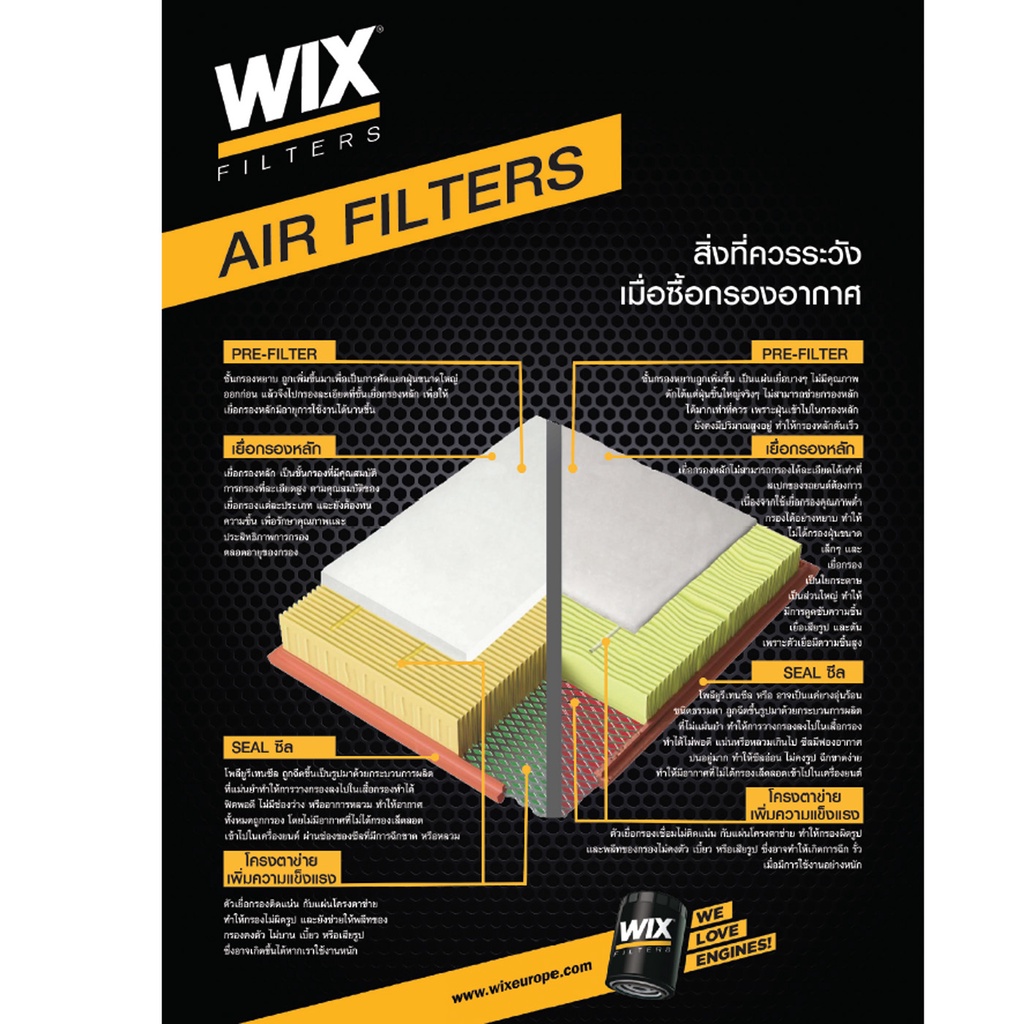 Wix กรองอากาศ Toyota Altis G2 g3Vios g2 Yaris g1 โตโยต้า อัลติส ปี08-07 วีออส ปี 07-12 ยาริส ปี07-13