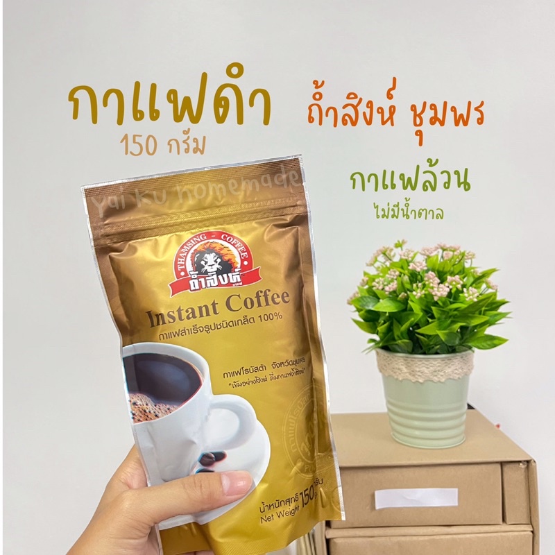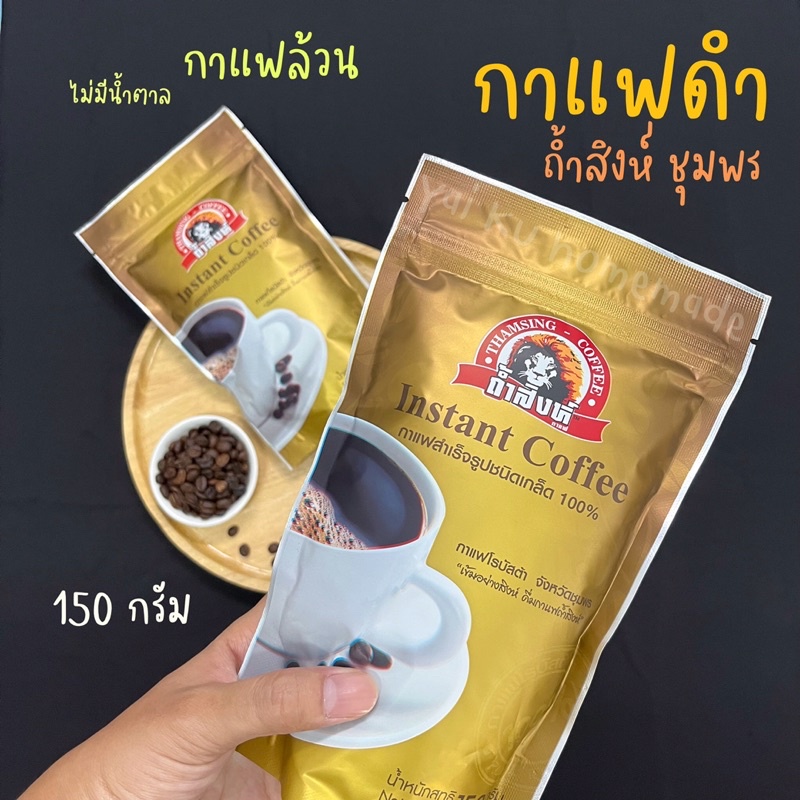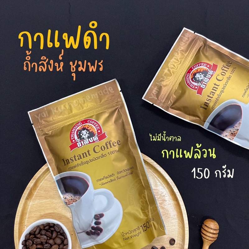 กาแฟดำถ้ำสิงห์ 150 g. 🦁 กาแฟสำเร็จรูปชนิดเกล็ด ไม่มีน้ำตาล กาแฟโรบัสต้า จากชุมพร Instant Coffee (Thamsing)
