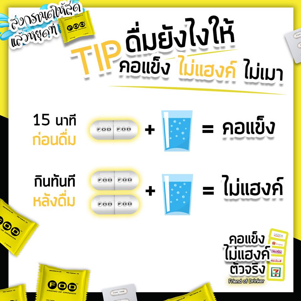 FOD Friend of Drinker +ลดความเมาจริง 3เม็ด/ซอง [9916] Hang out แก้แฮงค์ ป้องกันแฮงค์ ของดีนักดื่ม